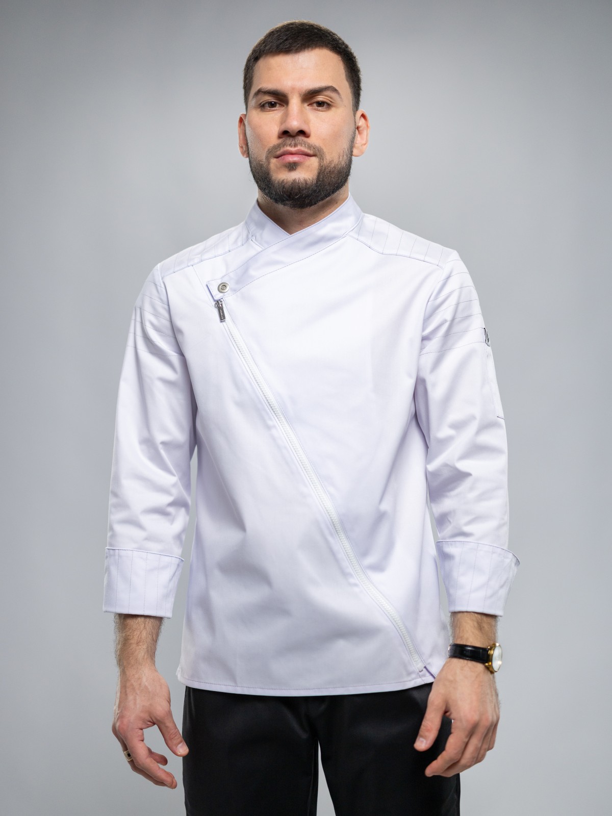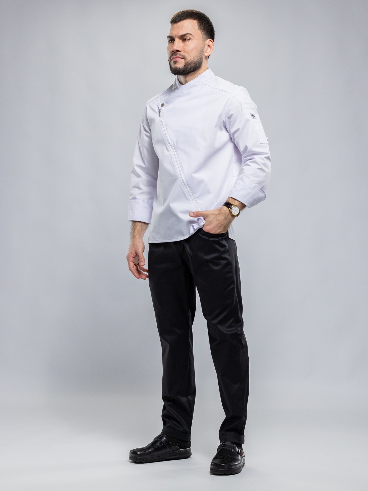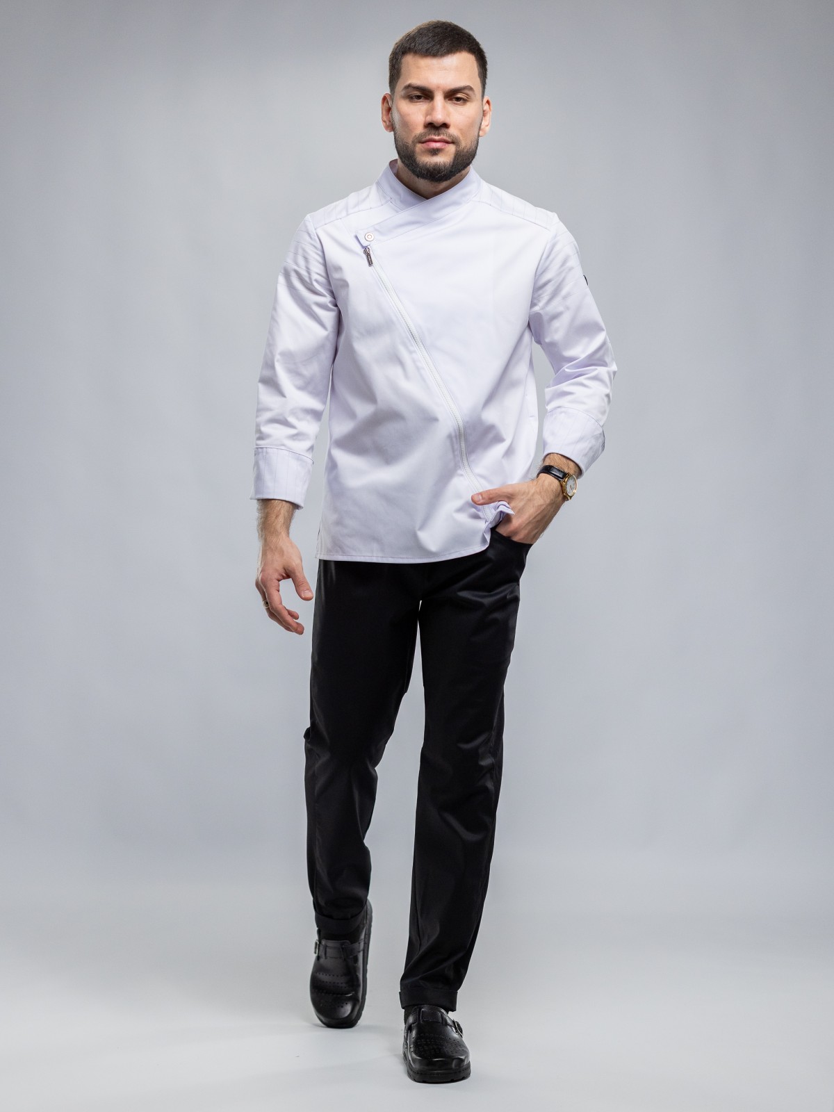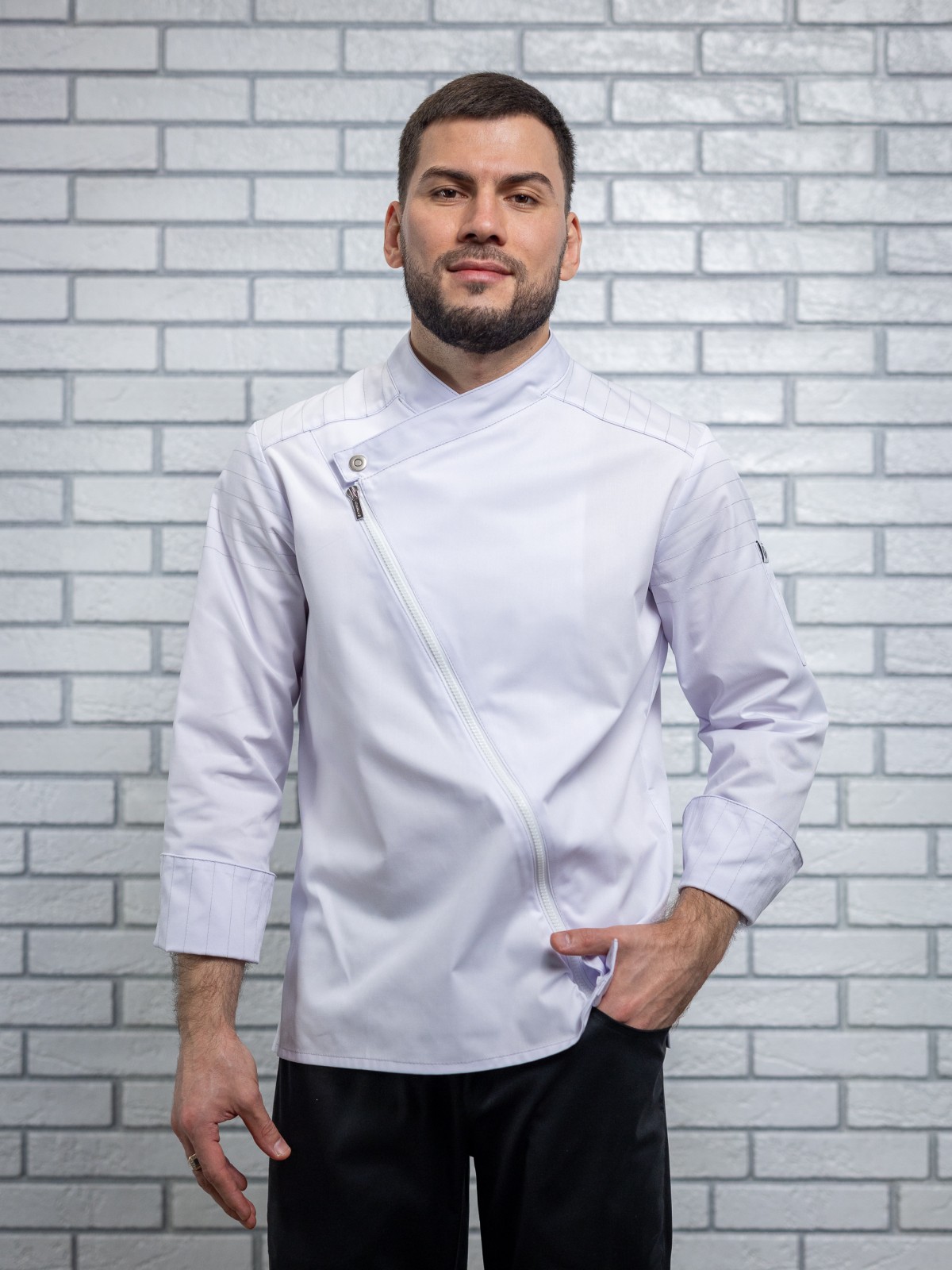 Облегающий крой этого поварского кителя подойдет практически для всех типов фигур