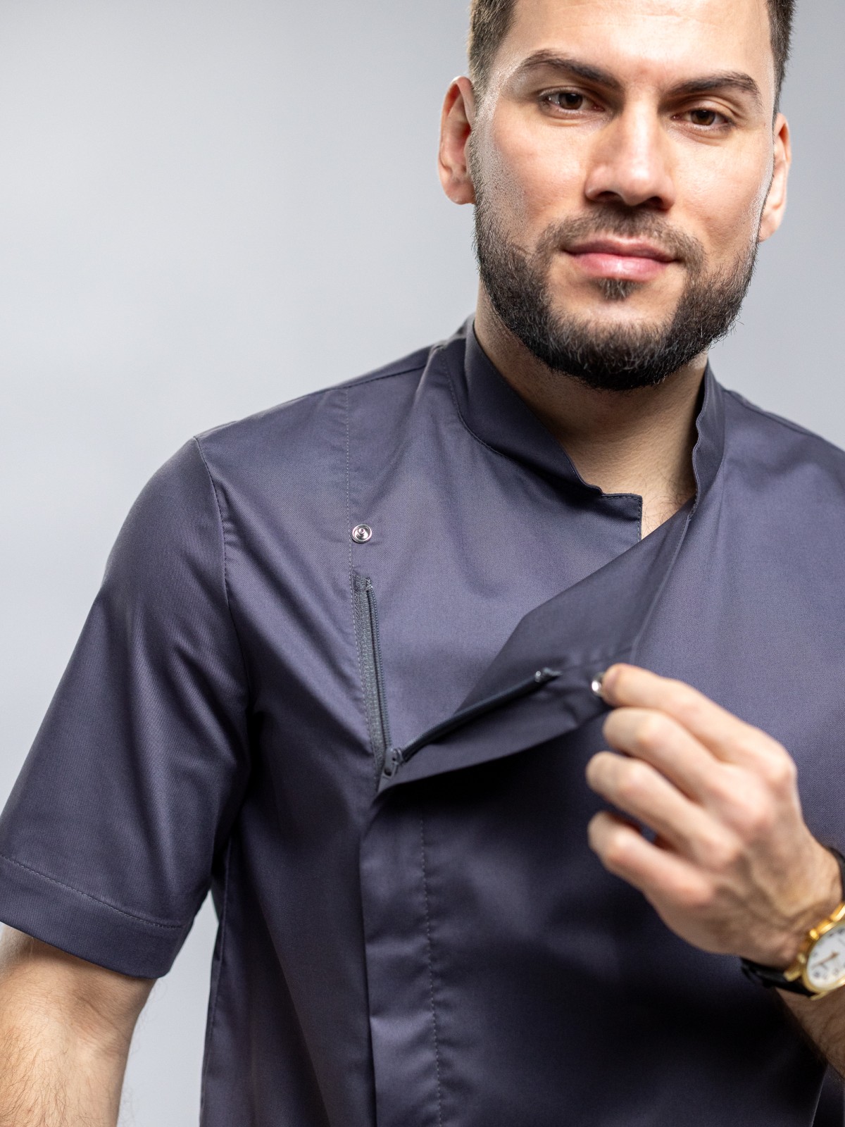 Это вариация классической поварской куртки с учётом современных требований к дизайну и практичности.