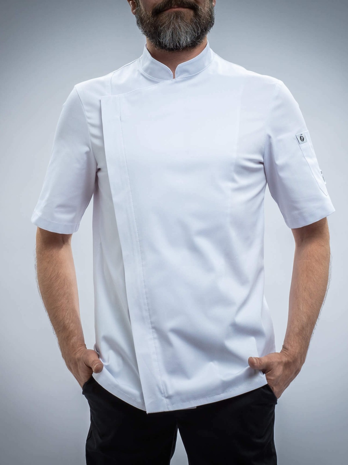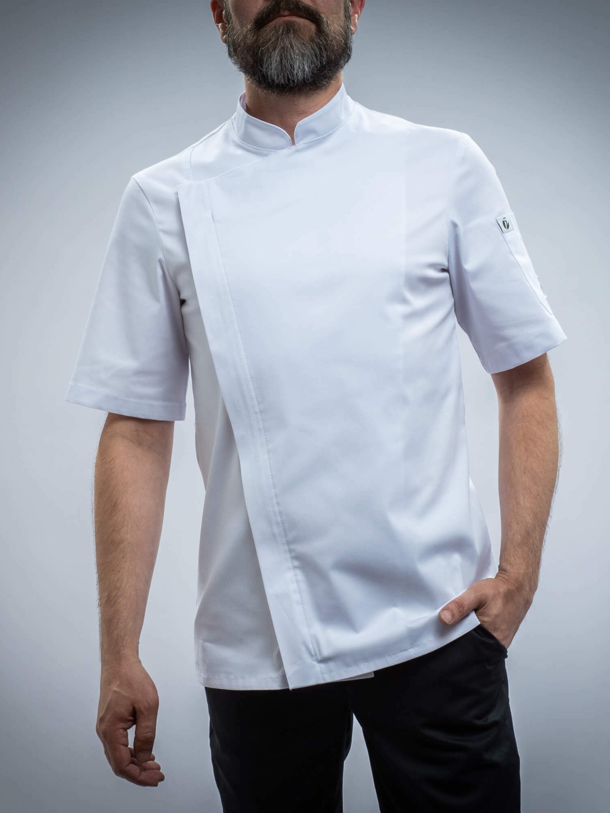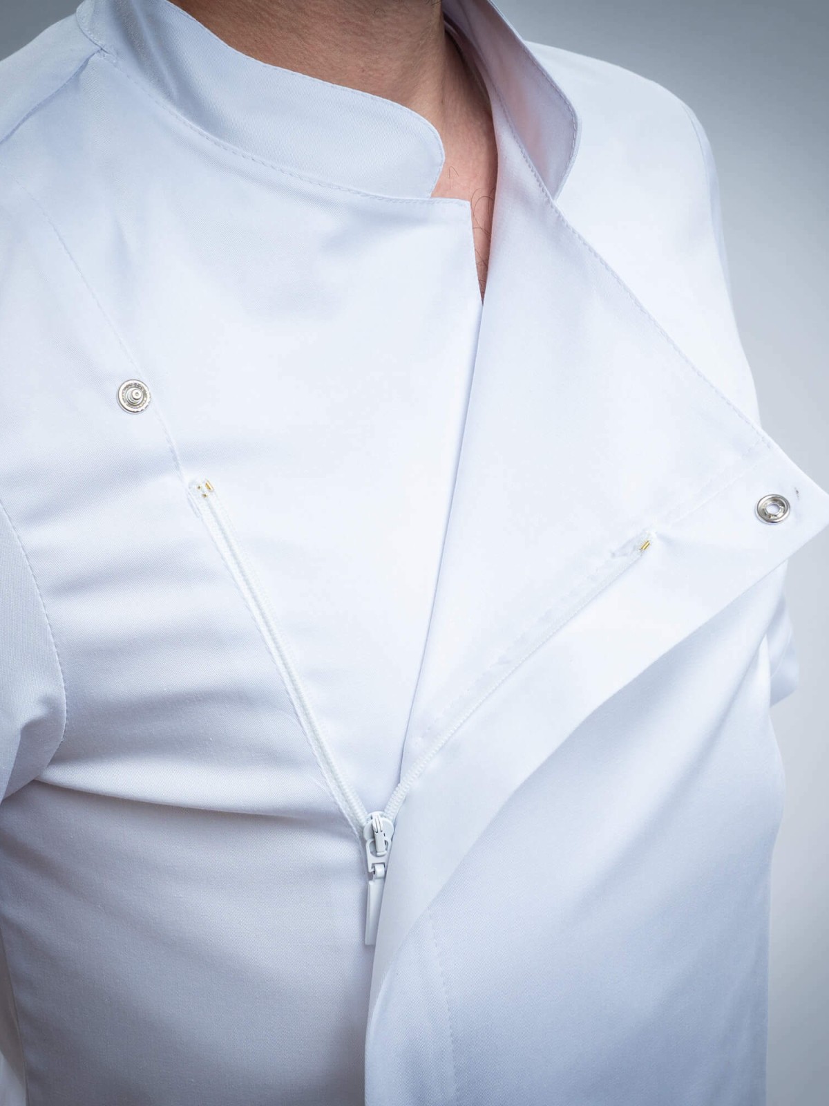 Это вариация классической поварской куртки с учётом современных требований к дизайну и практичности.