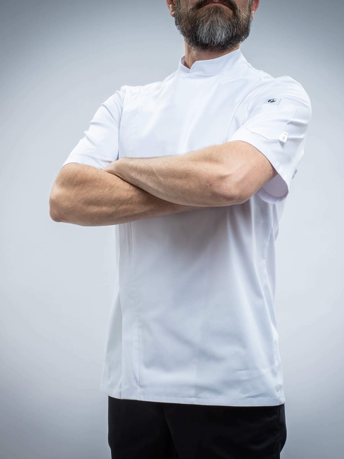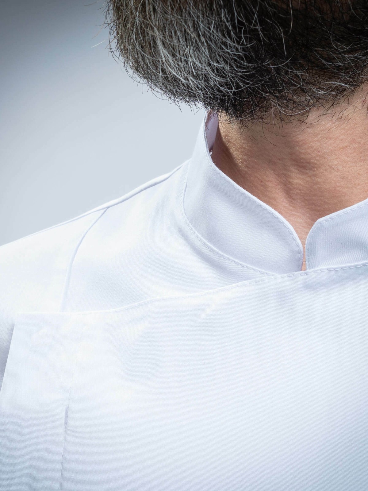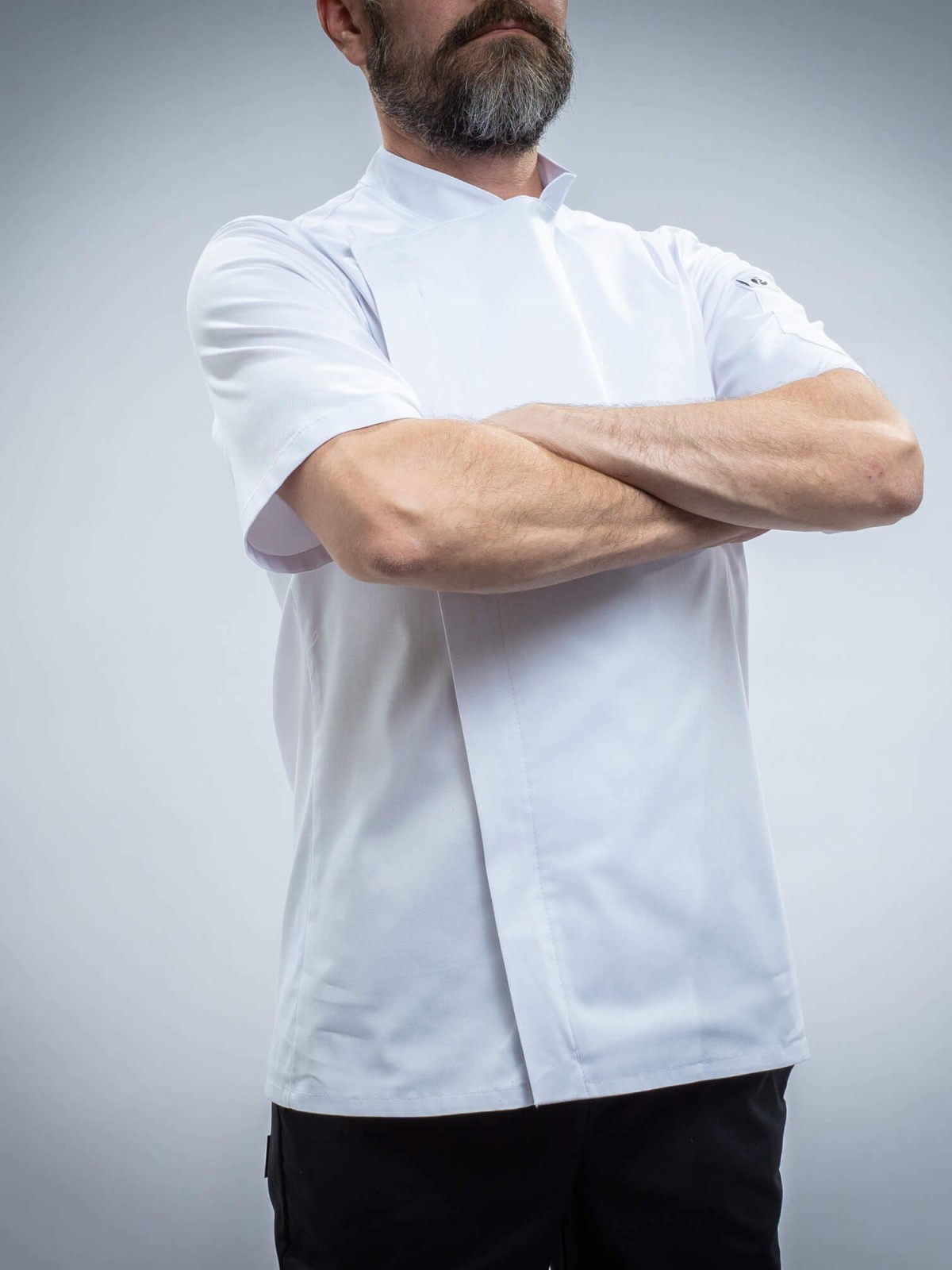 Это вариация классической поварской куртки с учётом современных требований к дизайну и практичности.