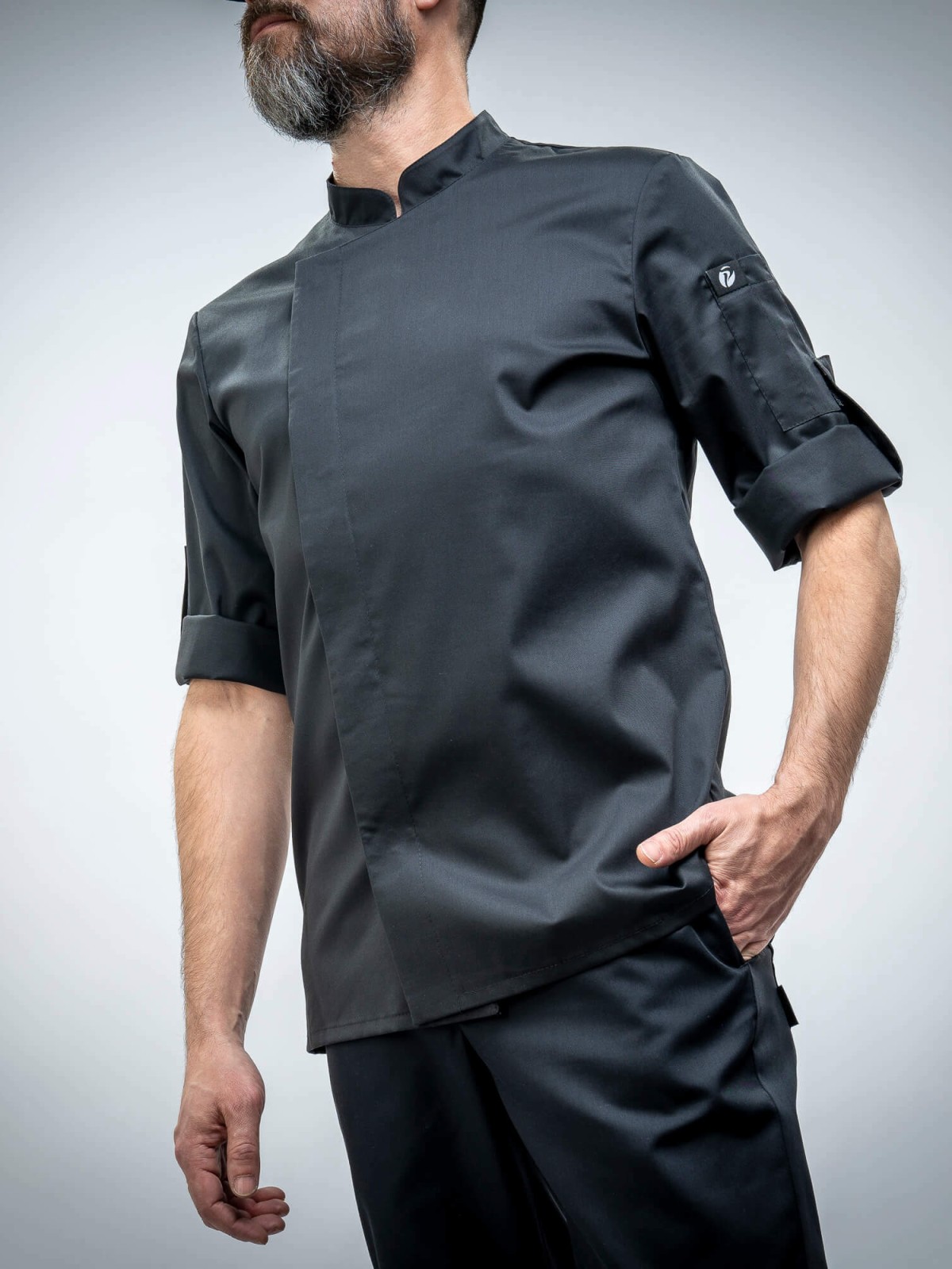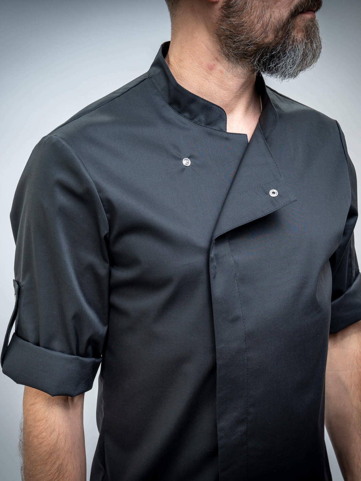 Это вариация классической поварской куртки с учётом современных требований к дизайну и практичности.