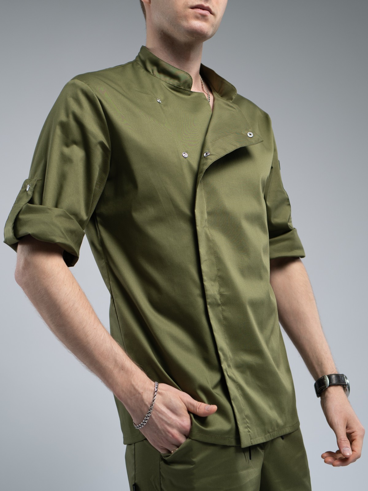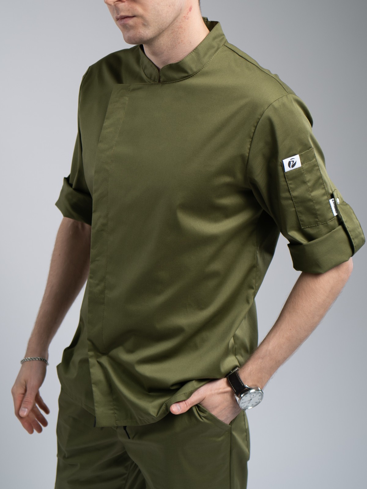 Это вариация классической поварской куртки с учётом современных требований к дизайну и практичности.