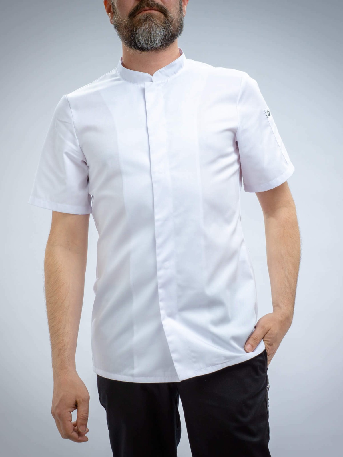 Это вариация классической поварской куртки с учётом современных требований к дизайну и практичности.