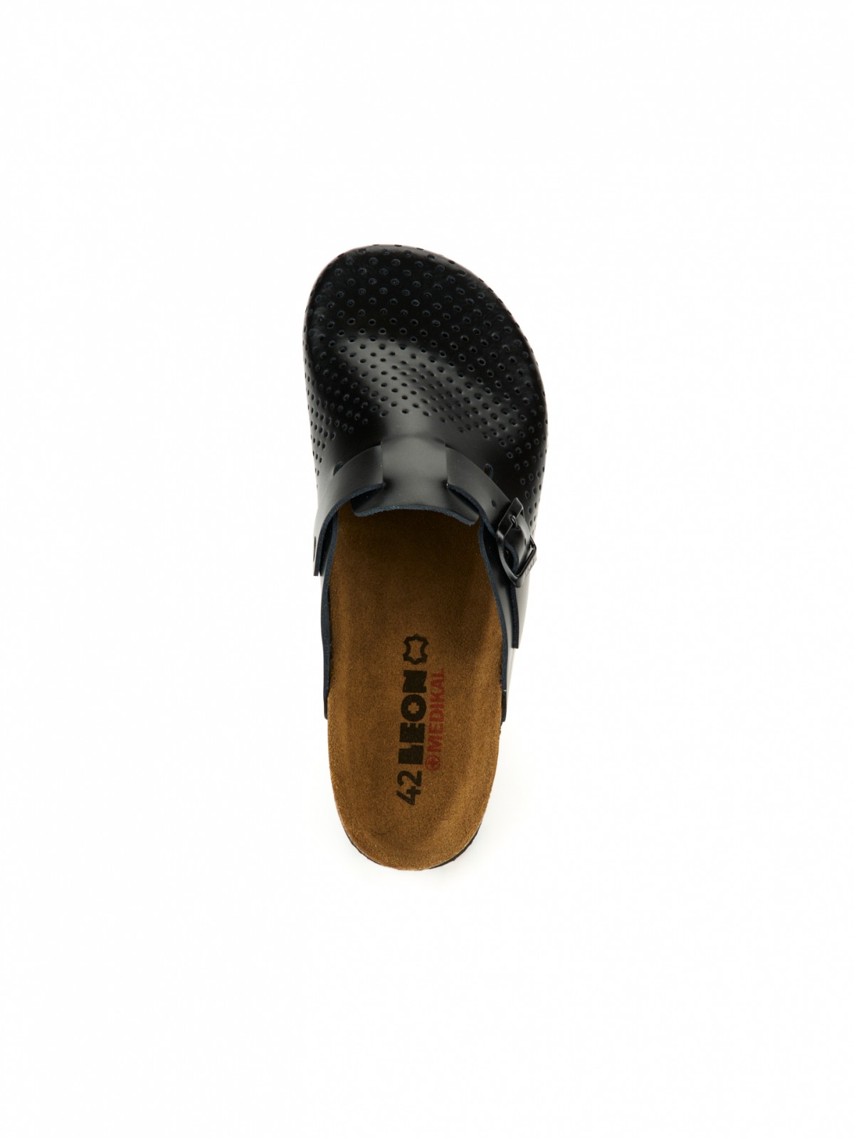 Мужские тапочки-сабо 4700MB – удобная модель с классическим модным дизайном из линейки качественной европейской обуви LEON. Анатомические сабо, благодаря специальной конструкции, обеспечивают высокую степень комфорта при нагрузке и ходьбе и позволяют сохранять активность в течение всего дня. Мужская обувь из Сербии изготавливается из натуральной кожи высокого качества и имеет специальную подошву, равномерно распределяющую нагрузку на ноги. Благодаря этому, тапочки-сабо 4700MB подходят для любой, даже длительной нагрузки. Массажная гелевая стелька, которая используется при изготовлении модели LEON сабо, корректирует положение стопы, улучшает кровообращение в ногах, снижает отечность и ликвидирует усталость. Модель имеет кожаный ремешок на застежке, позволяющий регулировать обувь по ширине стопы.