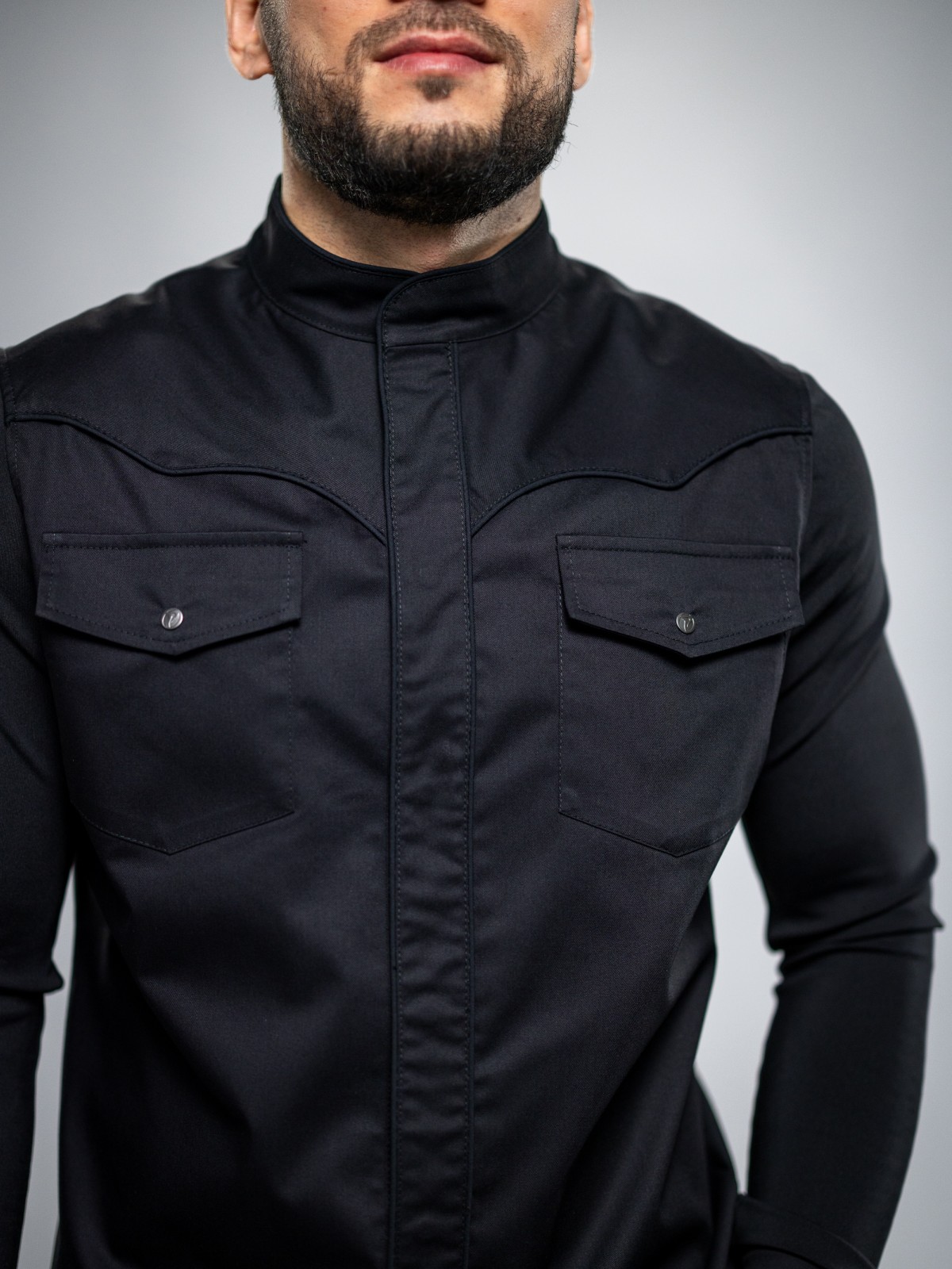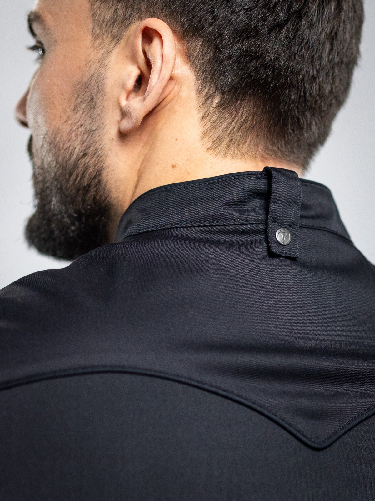 Ковбойская рубашка из современных профессиональных материалов подходящих для использования на кухне и частых стирок.