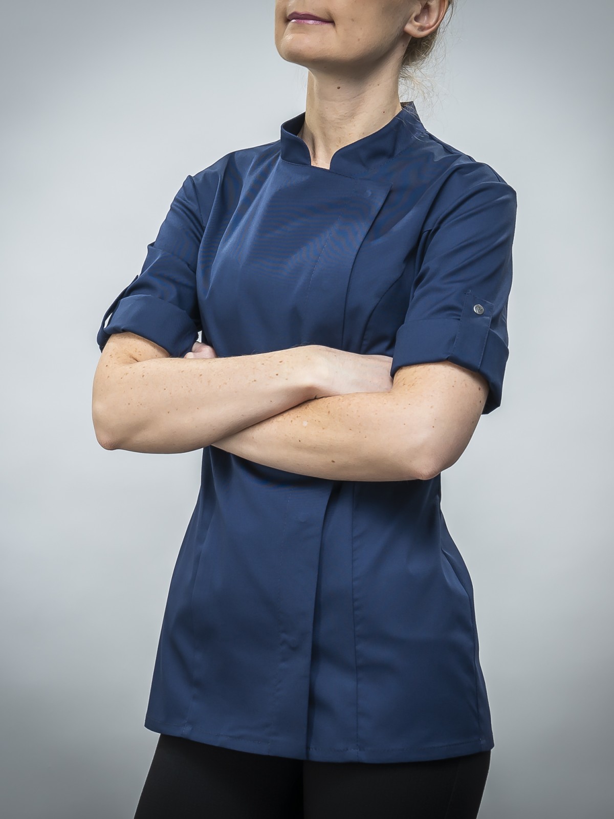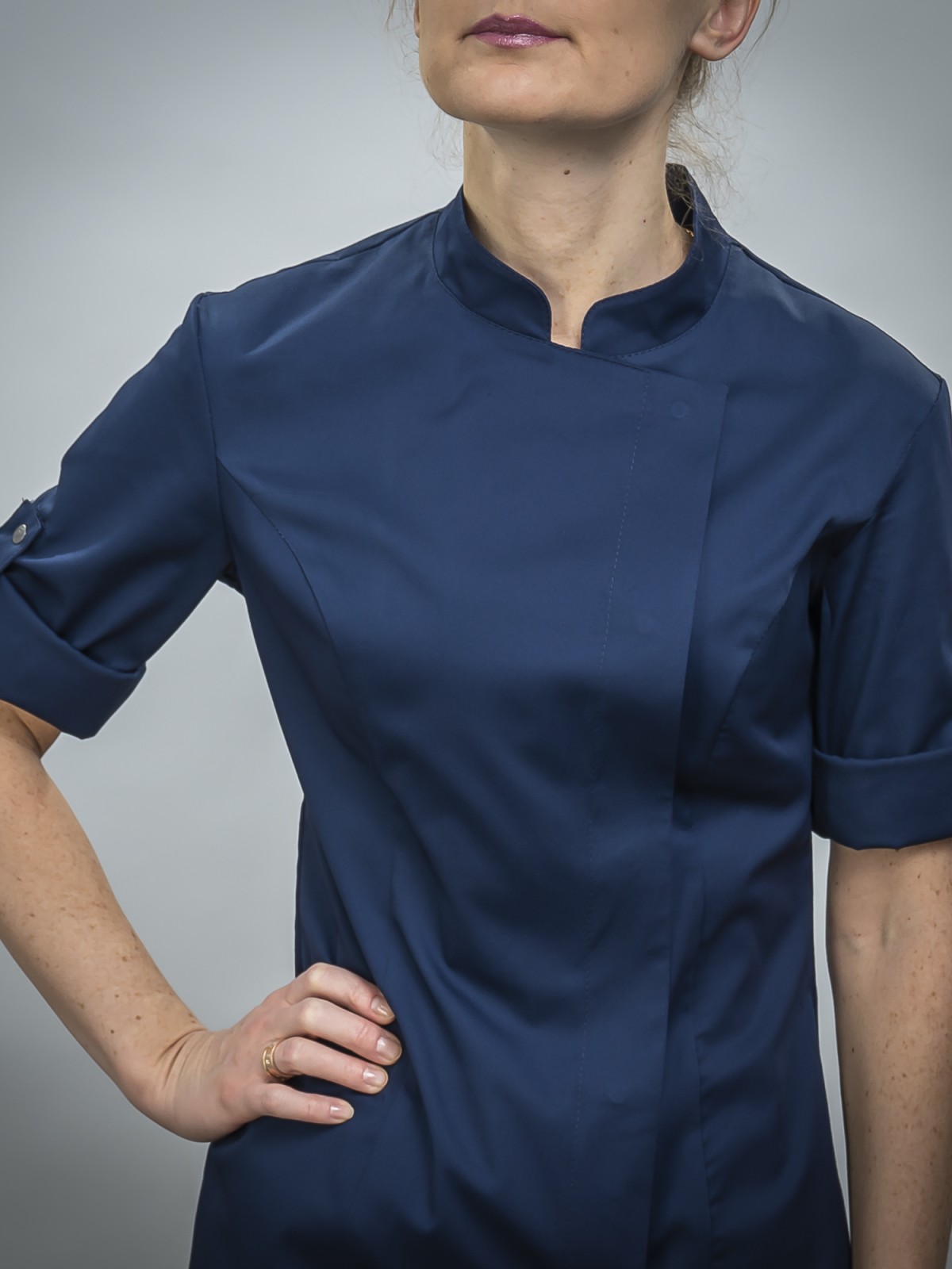 Это вариация классической поварской куртки с учётом современных требований к дизайну и практичности.