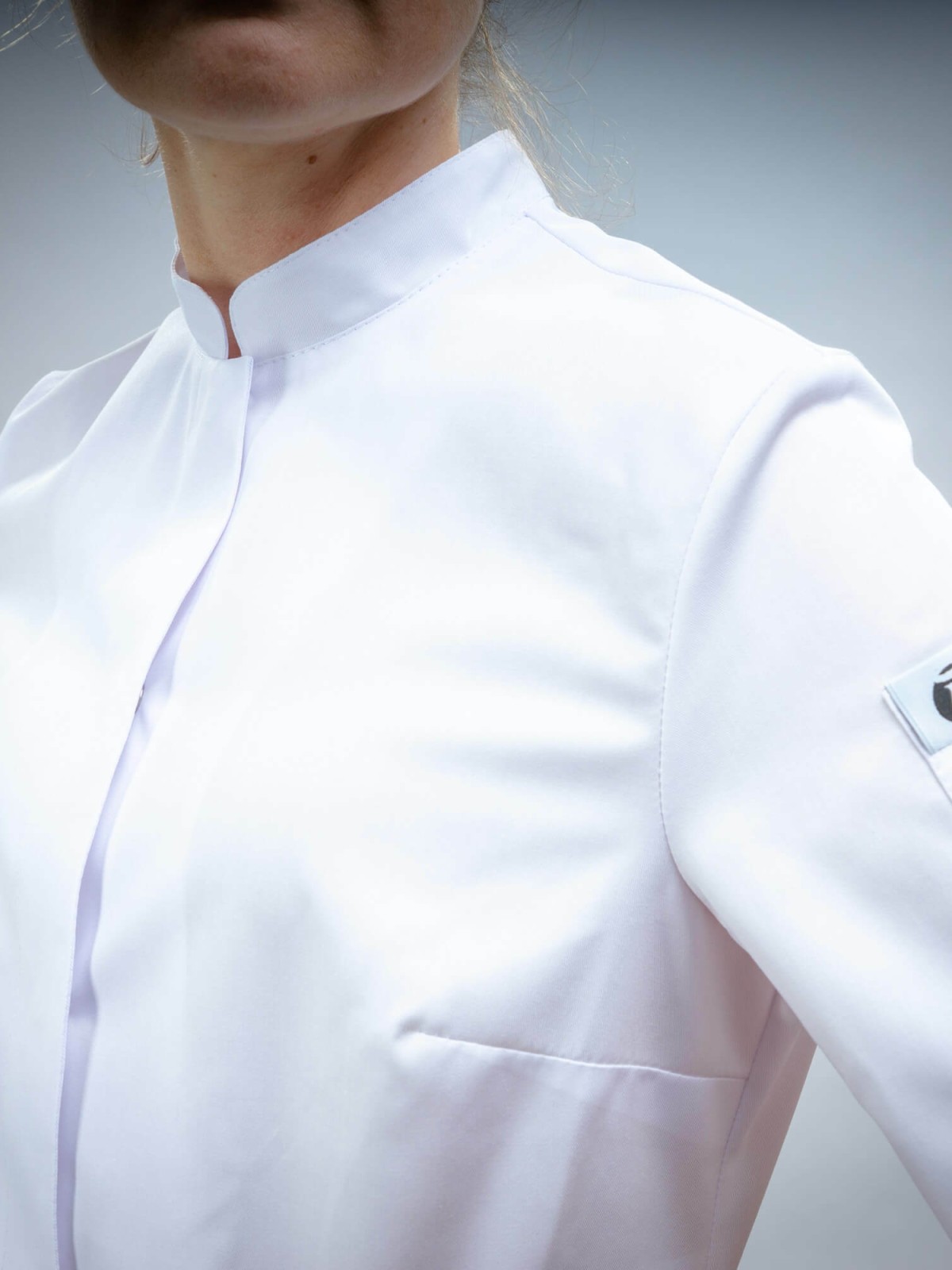 Это вариация классической поварской куртки с учётом современных требований к дизайну и практичности.