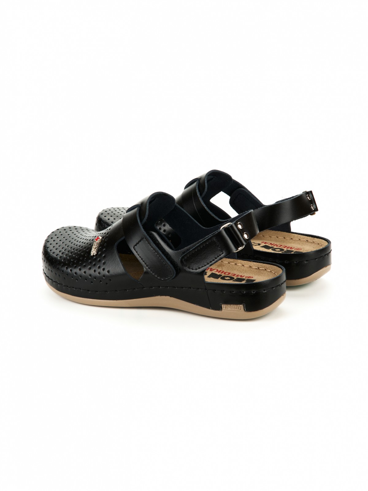Тапочки-сабо 951B– удобная модель с классическим модным дизайном из линейки качественной европейской обуви LEON. Анатомические сабо, благодаря специальной конструкции, обеспечивают высокую степень комфорта при нагрузке и ходьбе и позволяют сохранять активность в течение всего дня. Женская обувь из Сербии изготавливается из натуральной кожи высокого качества и имеет специальную подошву, равномерно распределяющую нагрузку на ноги. Благодаря этому, тапочки-сабо 951 B подходят для любой, даже длительной нагрузки. Массажная гелевая стелька, которая используется при изготовлении модели LEON сабо, корректирует положение стопы, улучшает кровообращение в ногах, снижает отечность и ликвидирует усталость. Модель имеет кожаный ремешок на застежке, позволяющий регулировать обувь по ширине стопы.