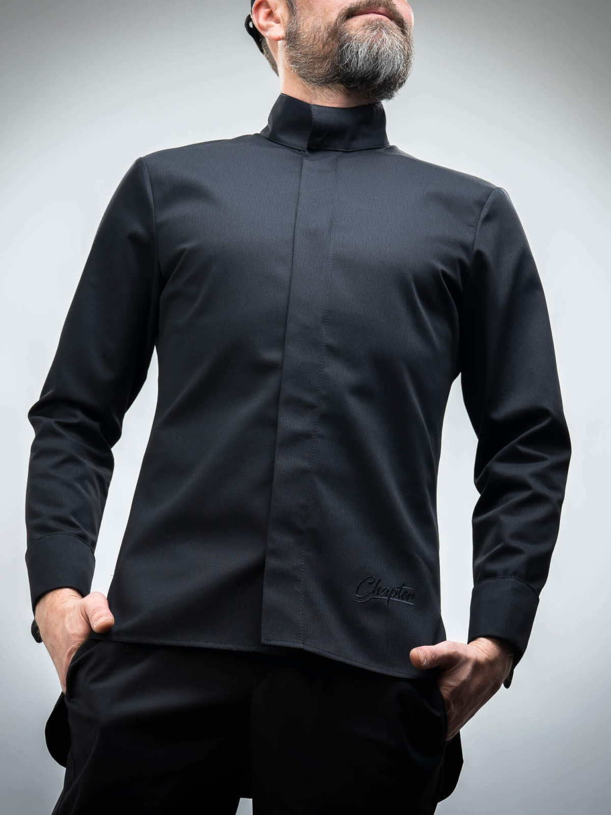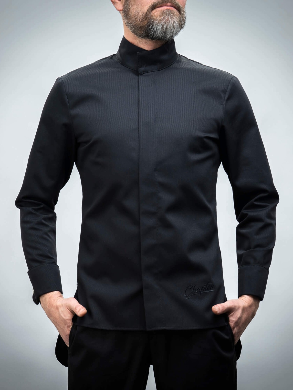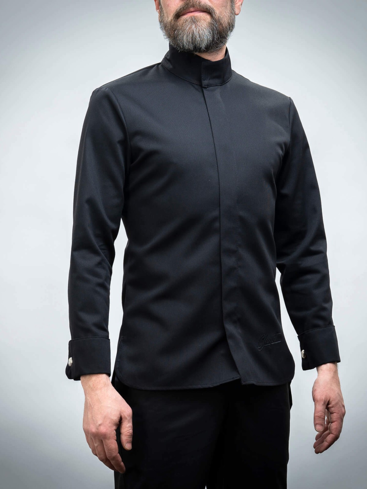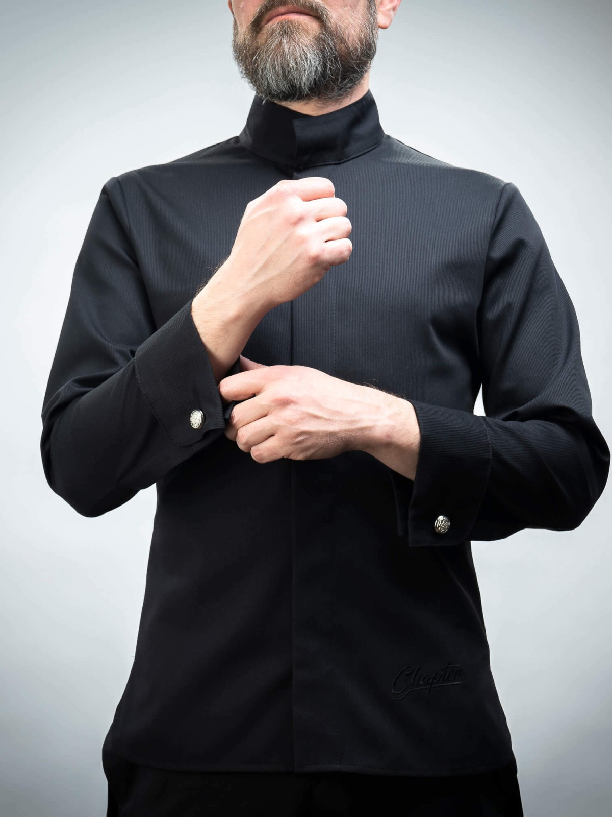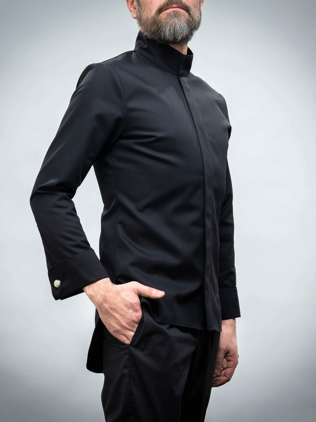 Классика в сочетании с запонками и высокой стойкой - отличный вариант для тех, кто придерживается традиционных взглядов, но хочет добавить оригинальности.
