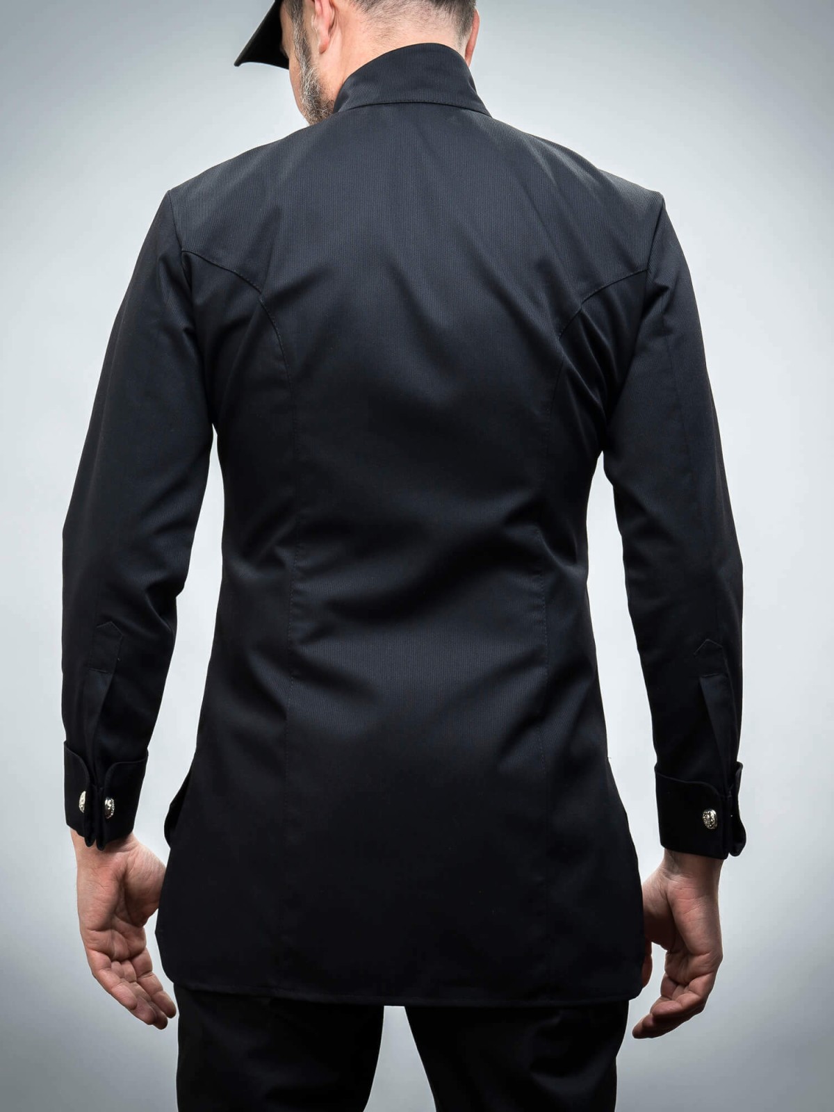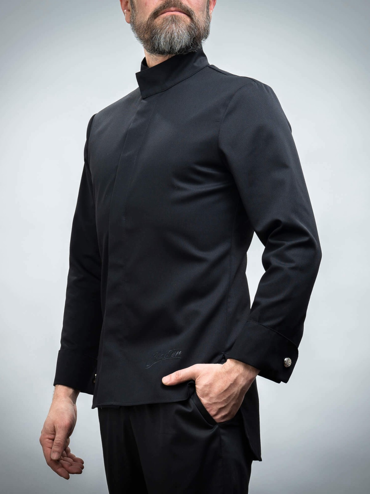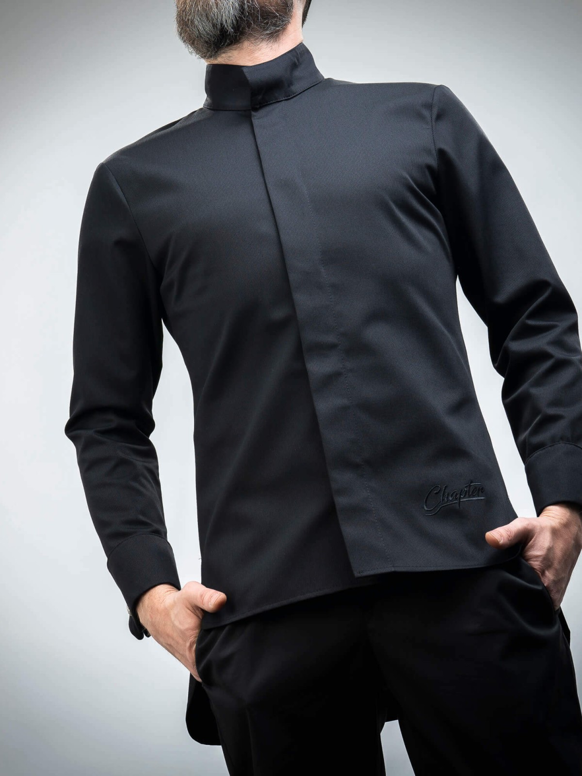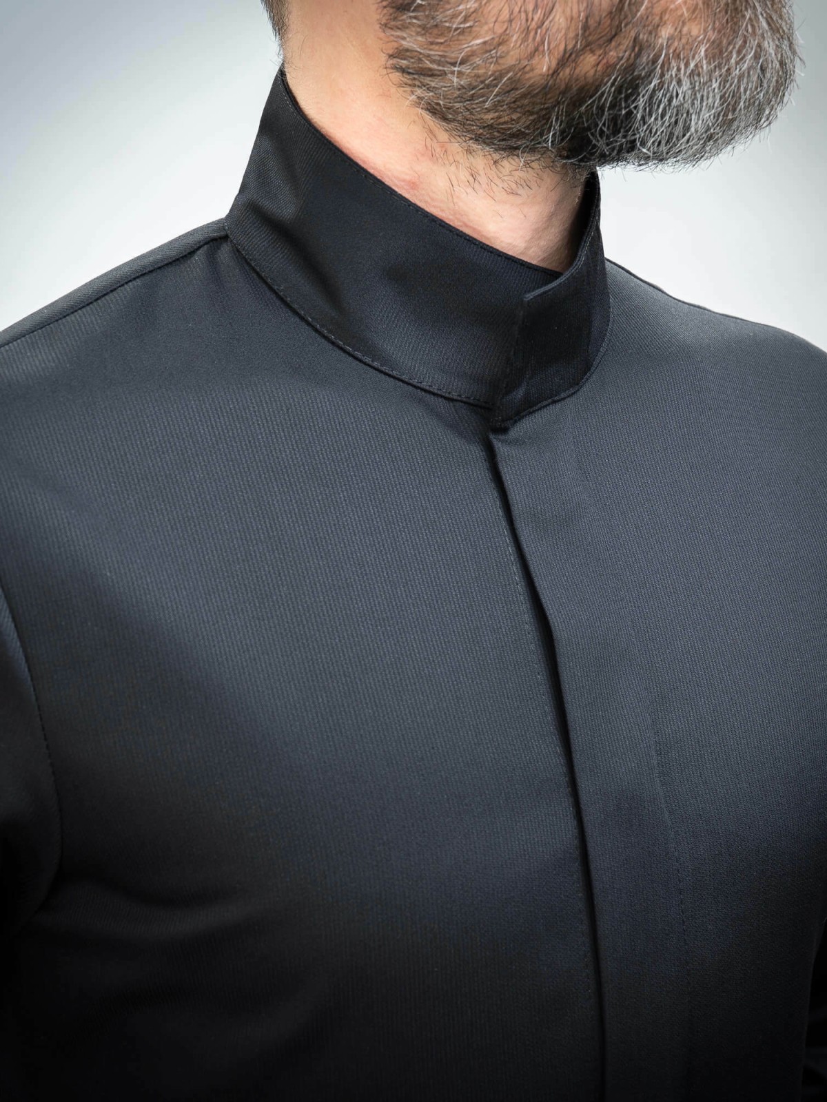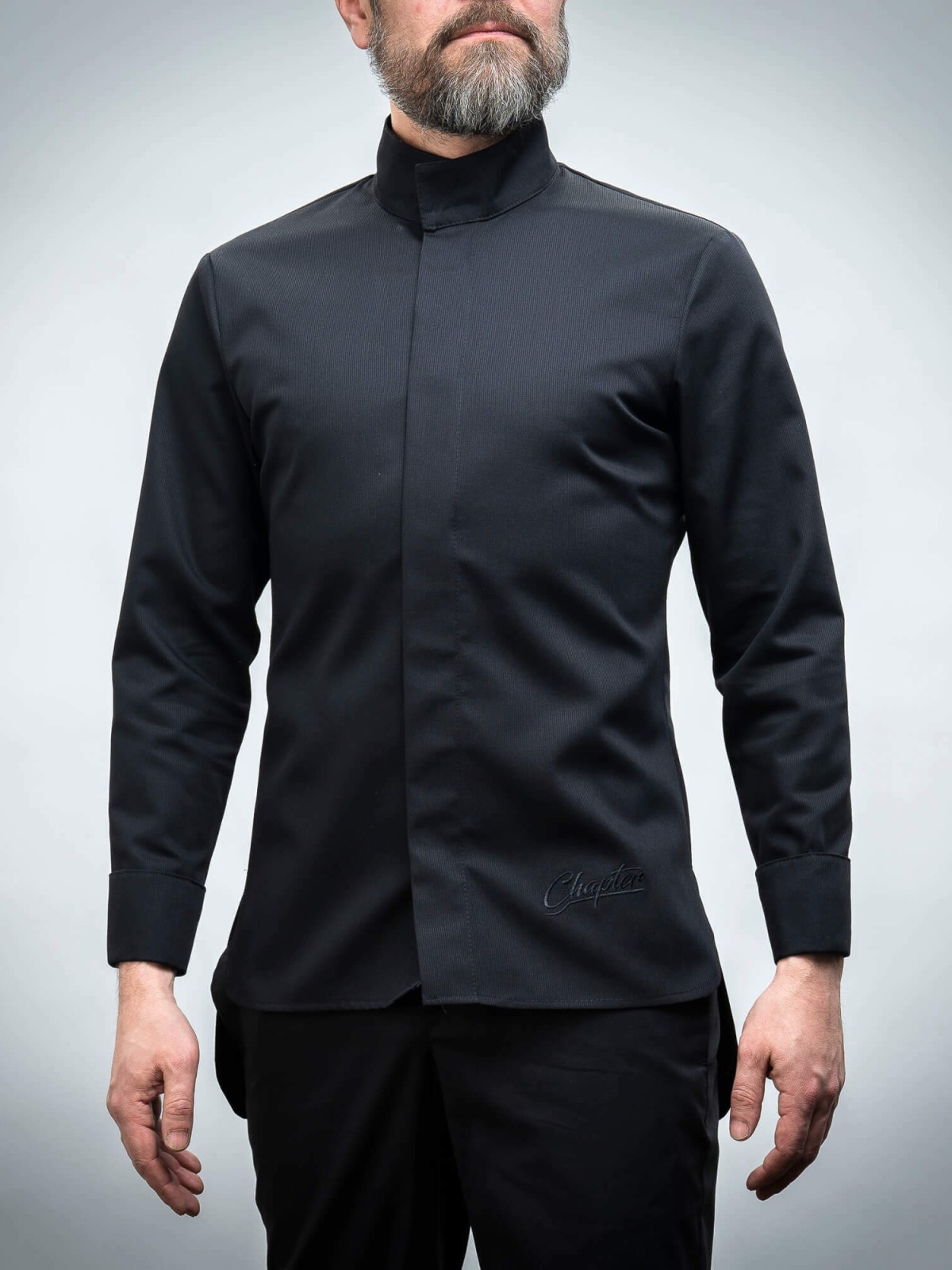 Классика в сочетании с запонками и высокой стойкой - отличный вариант для тех, кто придерживается традиционных взглядов, но хочет добавить оригинальности.