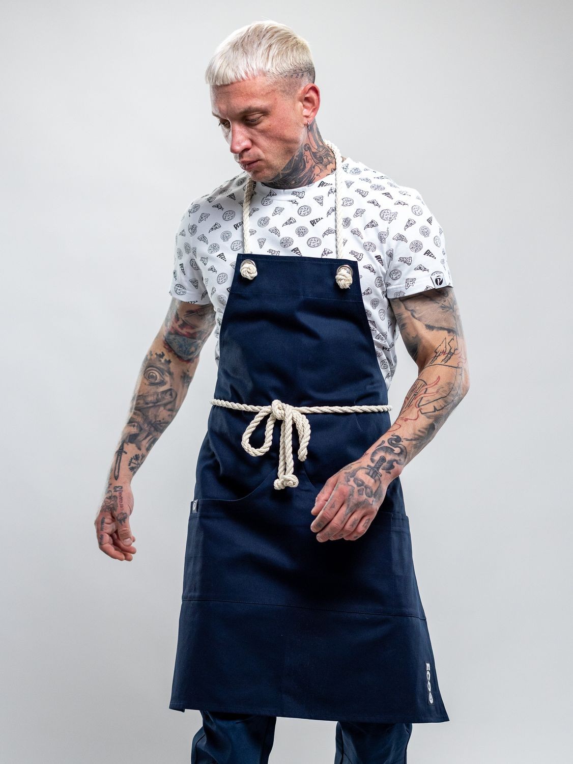 • Логотип ECO, означает натуральность материалов из которых создан поварской фартук F53X.