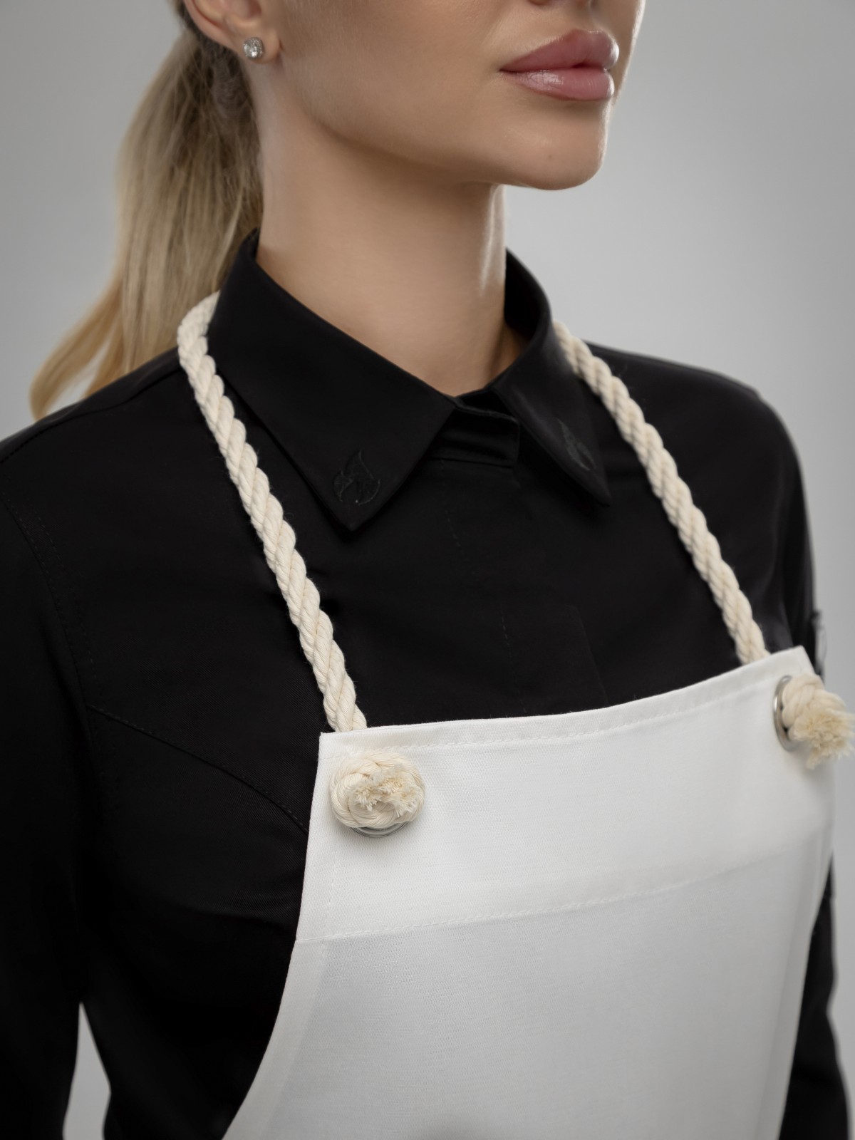 • Структура ткани поварского фартука F53X наделена способностью держать форму и не деформироваться при носке.