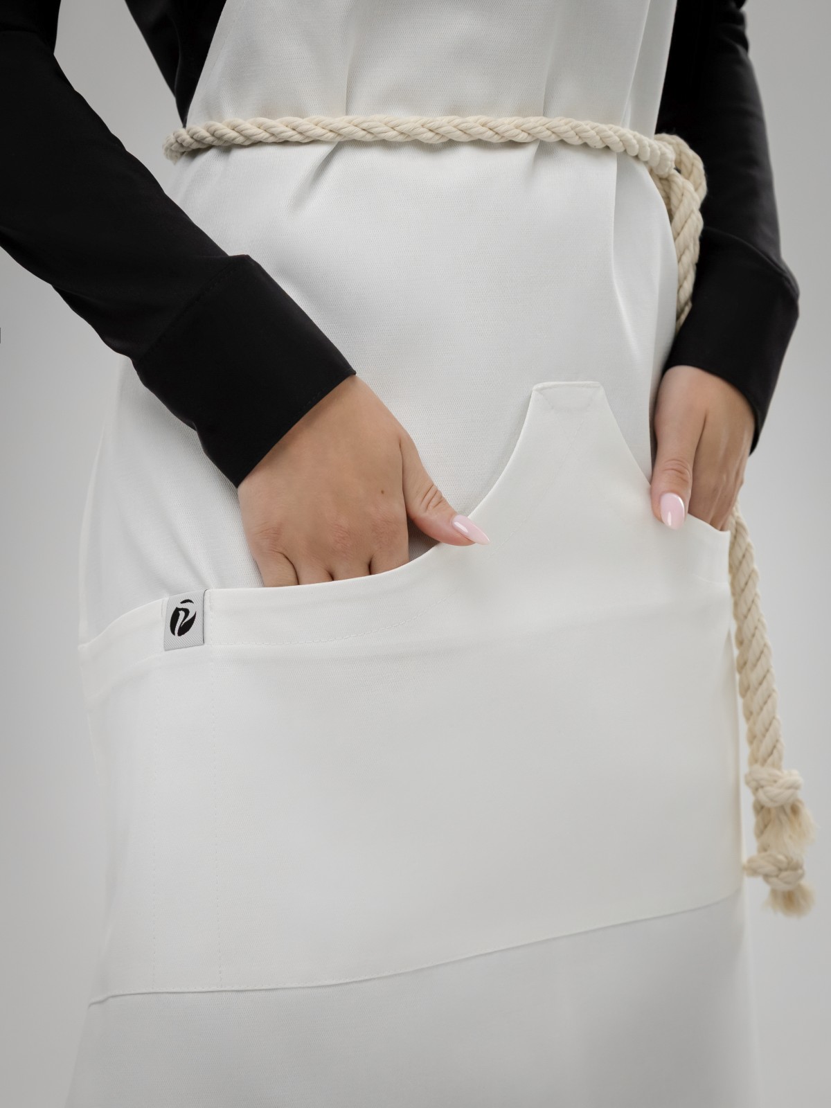 • Длинные поясные лямки фартука с возможностью завязать спереди.