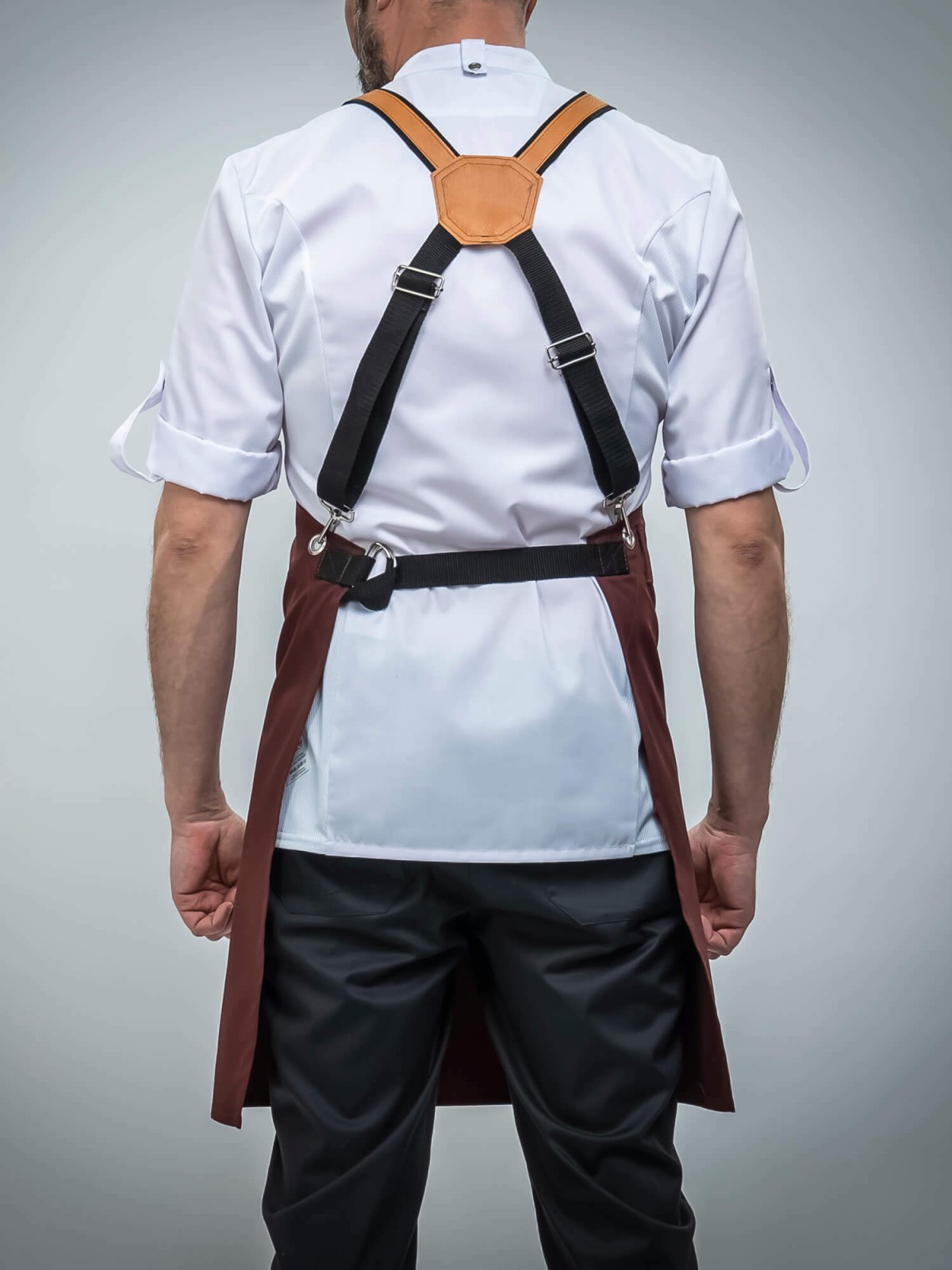 - Лямки фартука крестообразные. Они равномерно распределяют нагрузку на плечи, не нагружая шею.