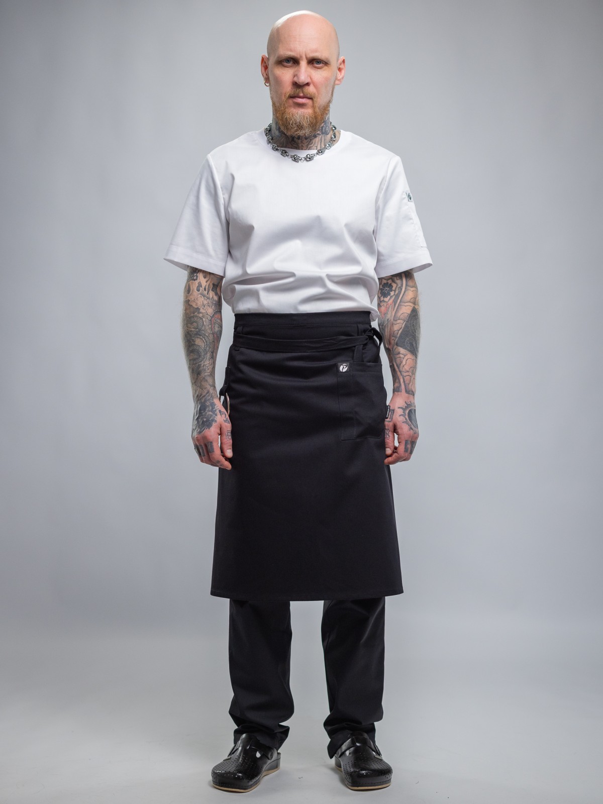 Универсальный фартук F62 ECO PITERPROF подойдёт как повару, так и официанту.