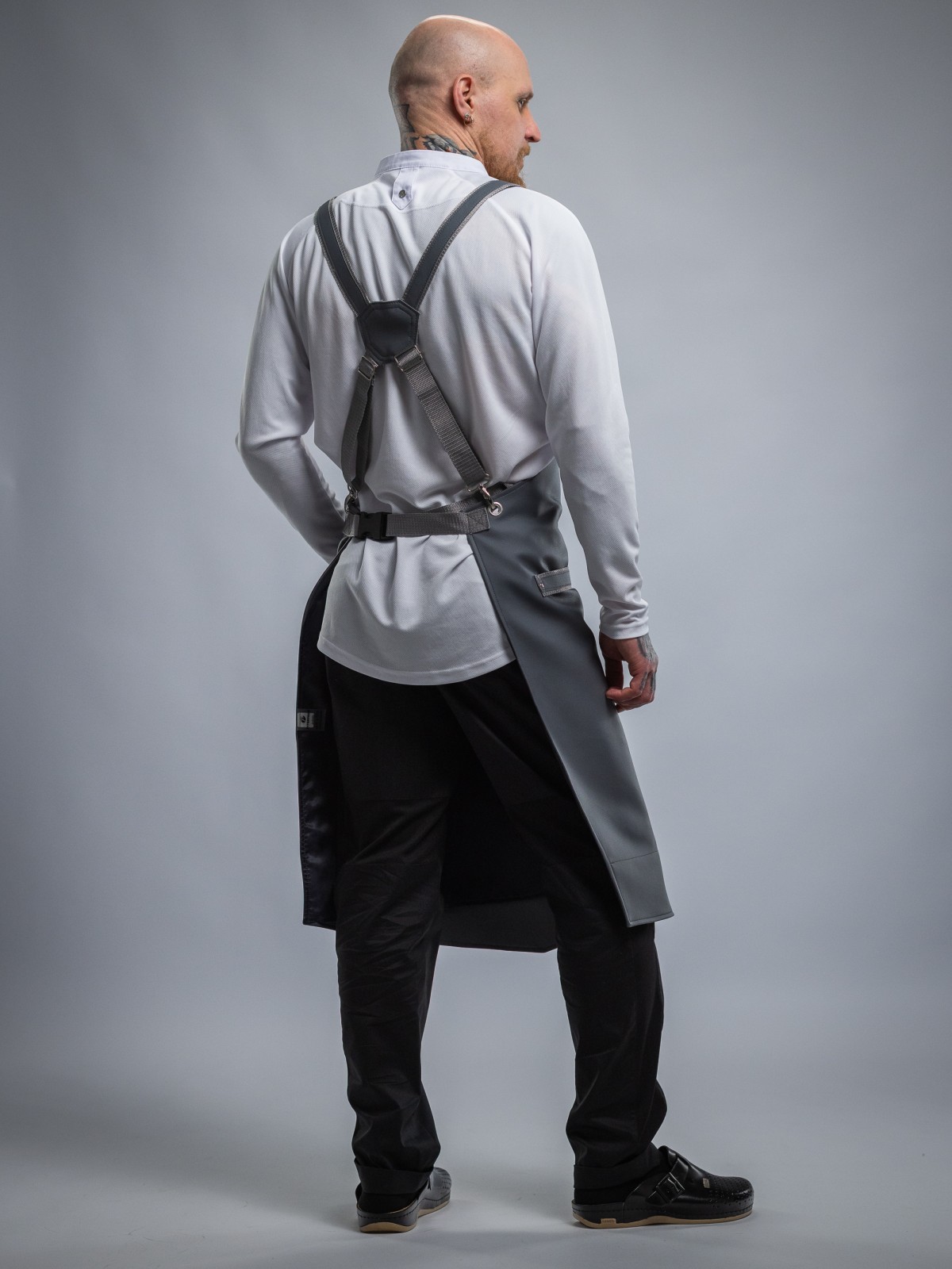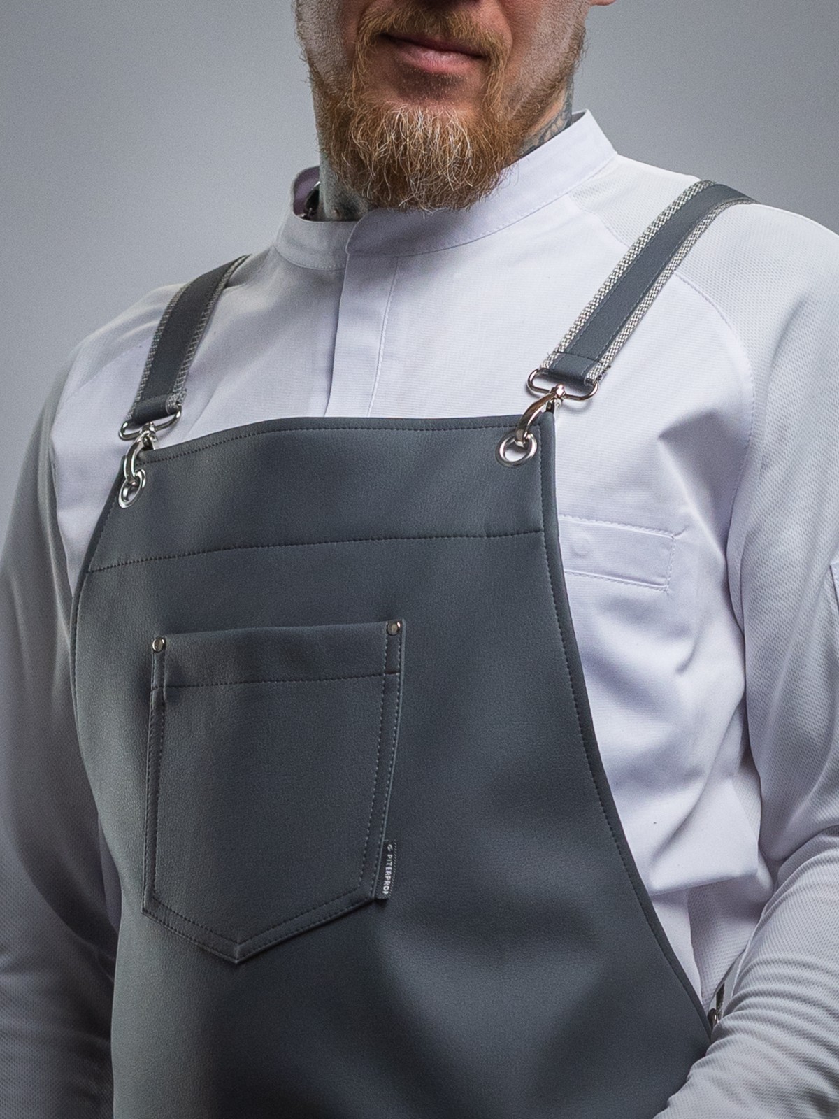 Фартук F64 из эко кожи на подкладке с Х-образными лямками.