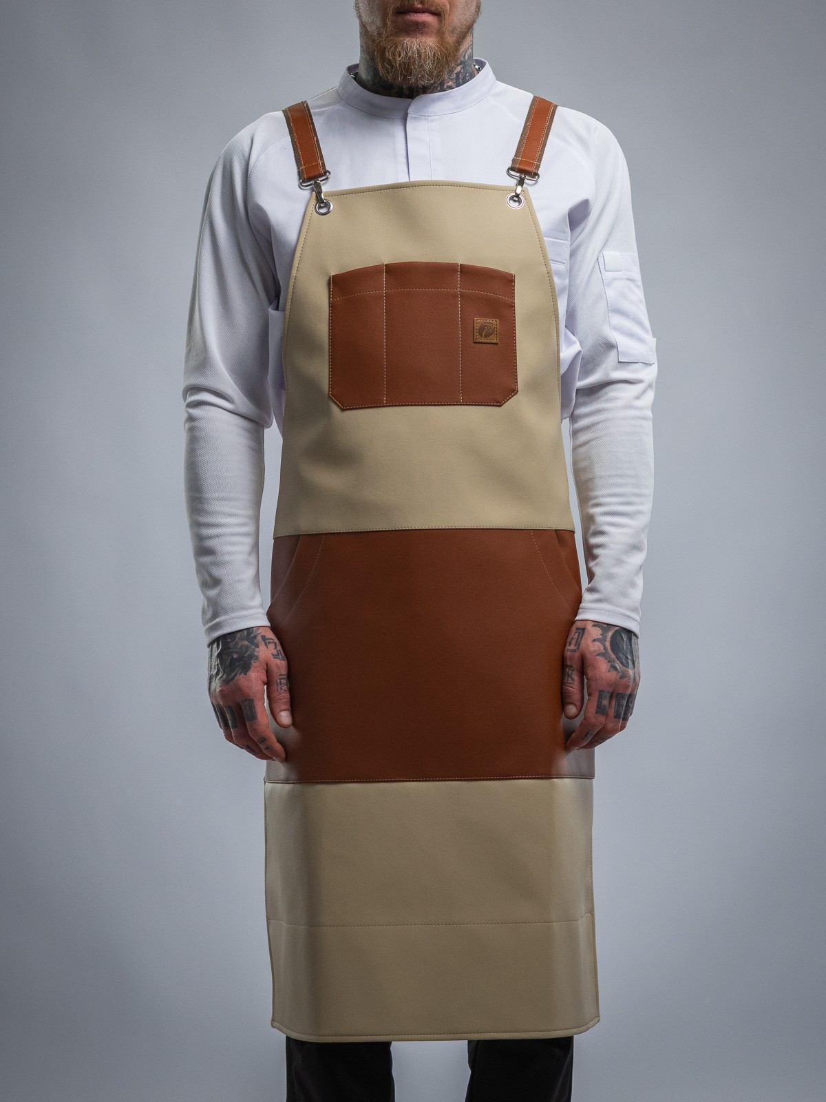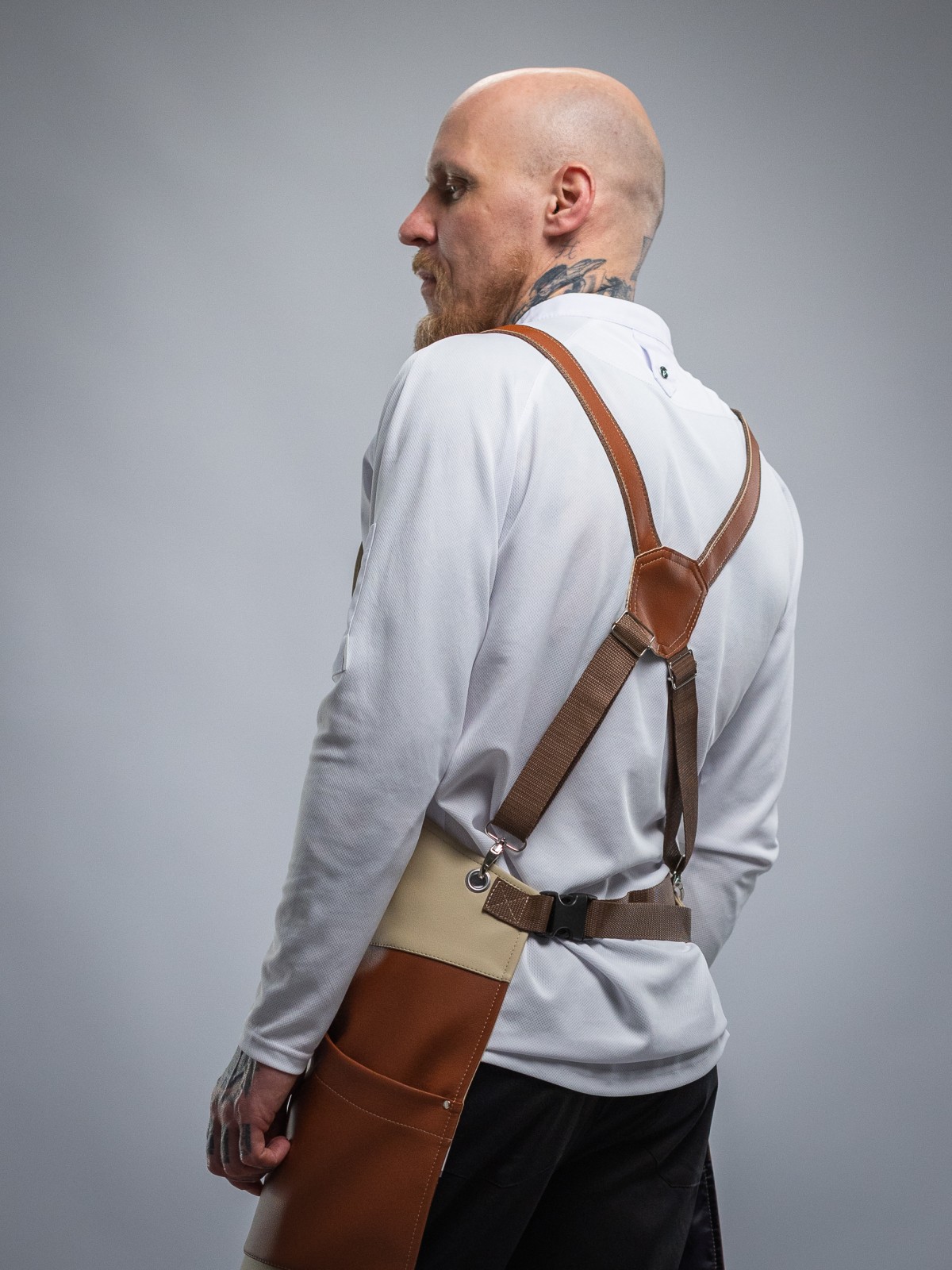 Фартук F65 из эко кожи на подкладке с Х-образными лямками.