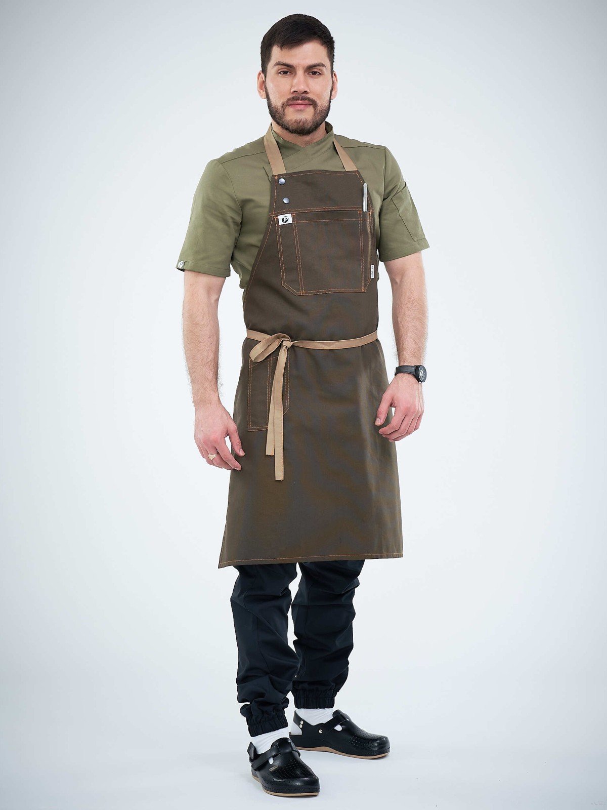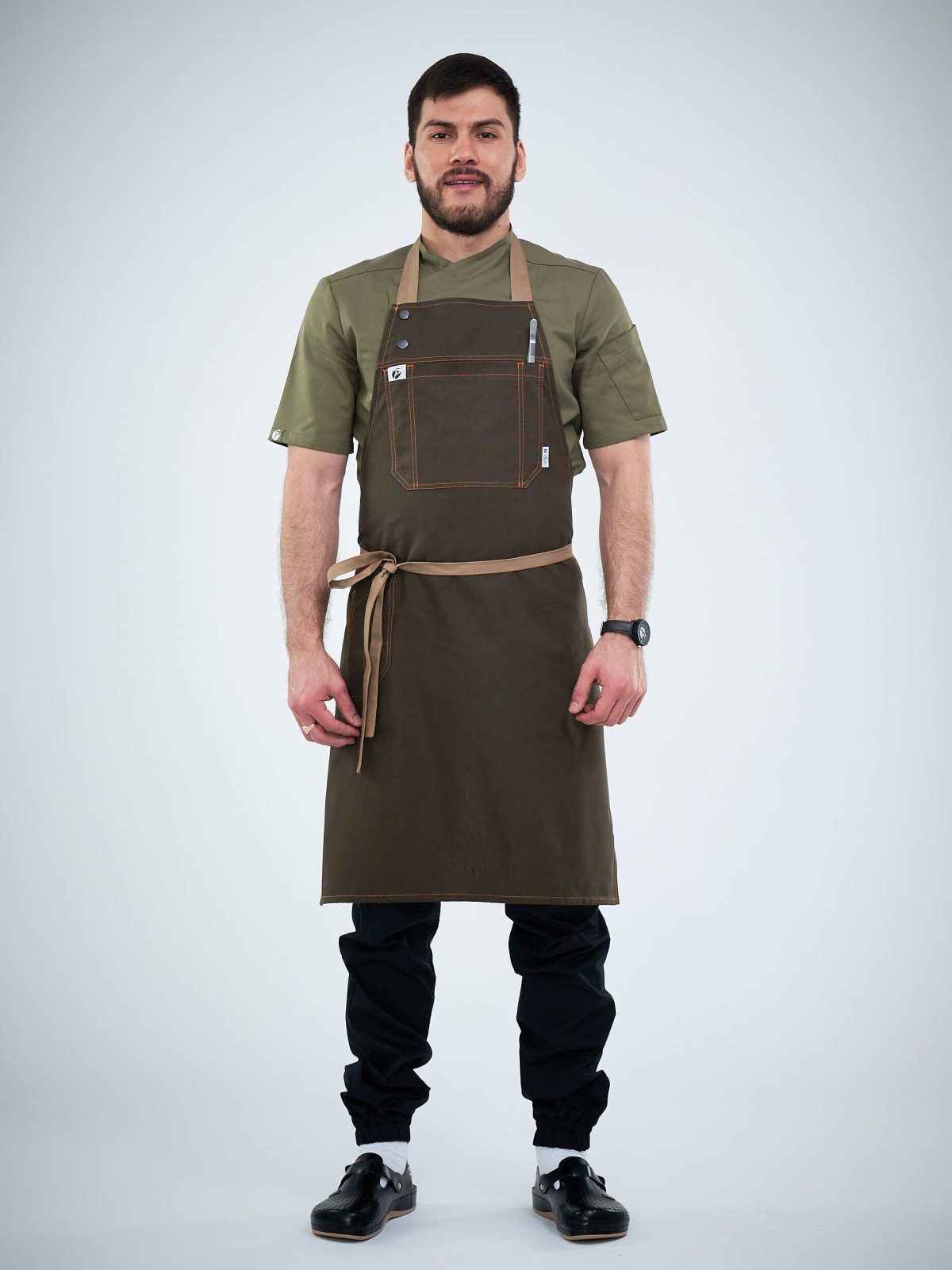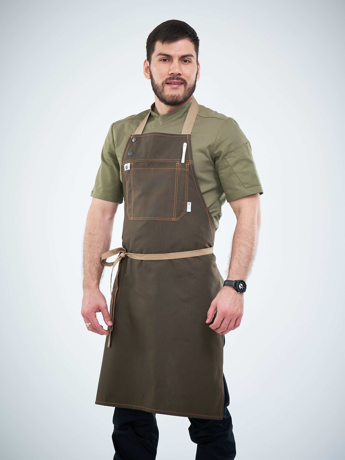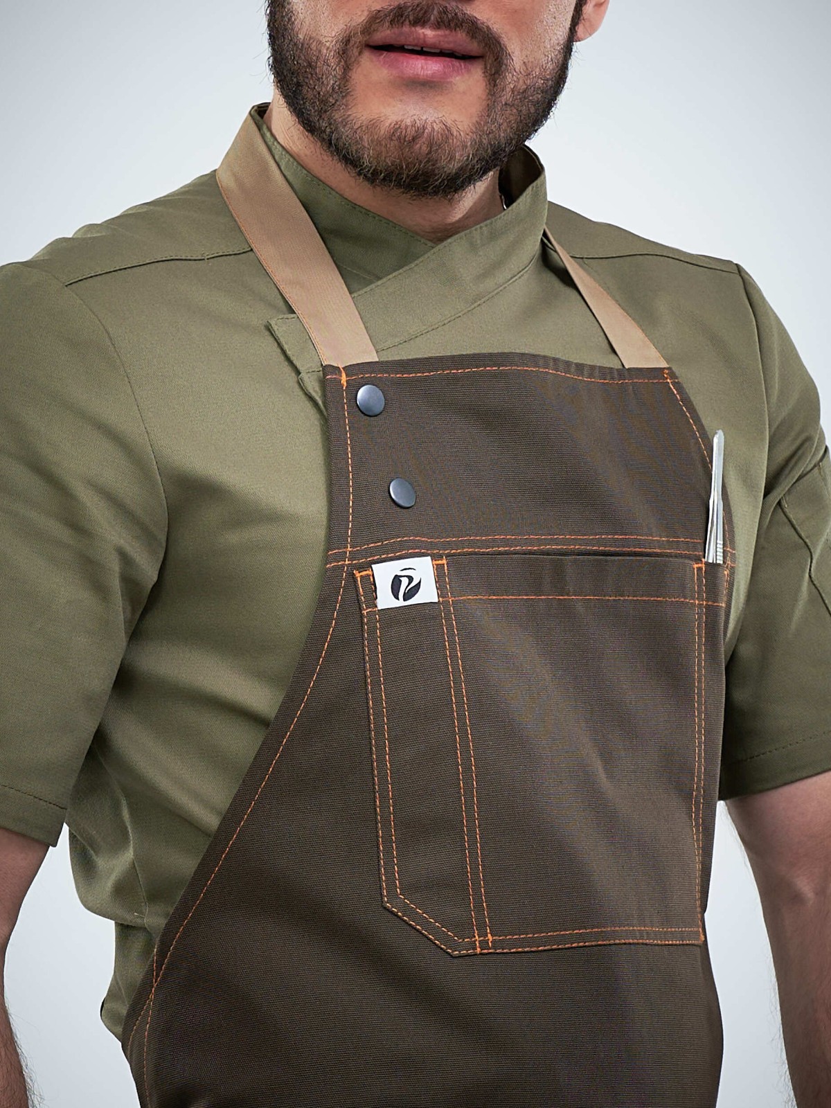 Фартуки серии FN4 PITERPROF отличаются особыми удобными карманами на груди и специальным боковым карманом для ручки или нарзанника.