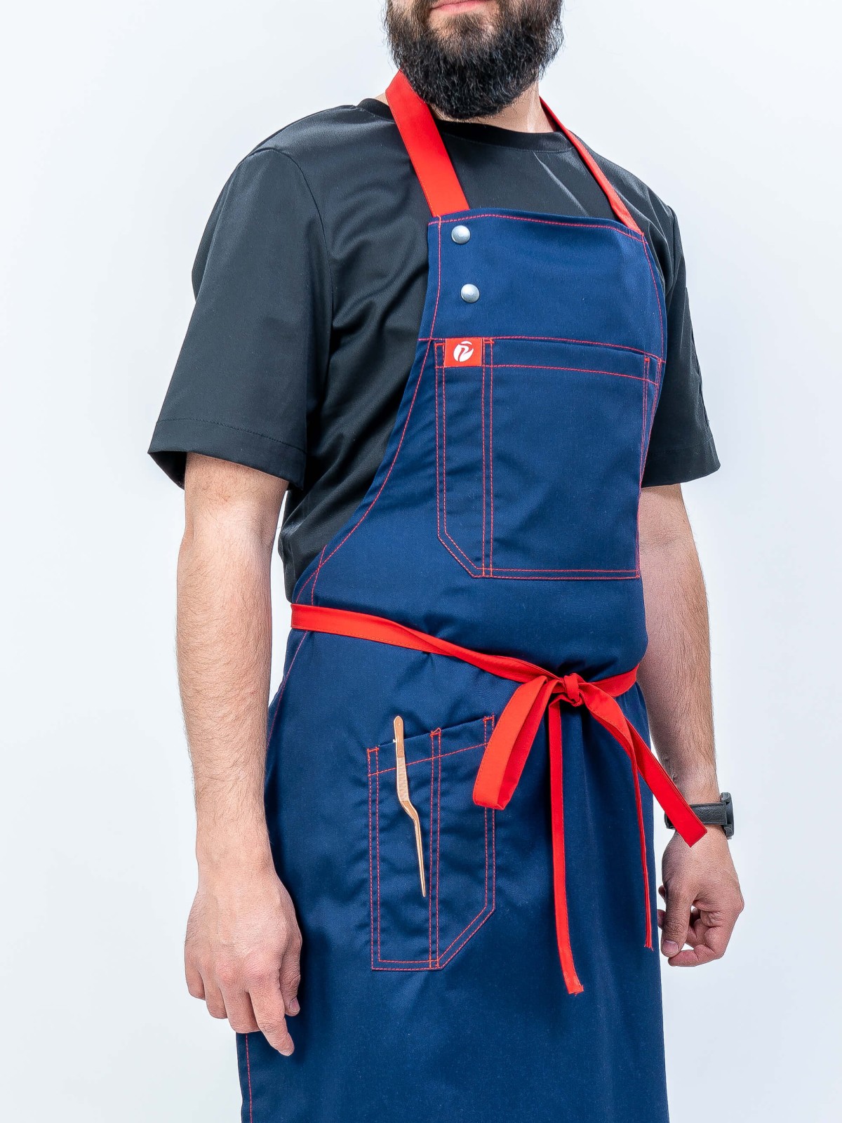 - Использована профессиональная ткань, которая позволяет стирать фартук десятки раз без потери внешнего вида, выцветания и образования катышек.