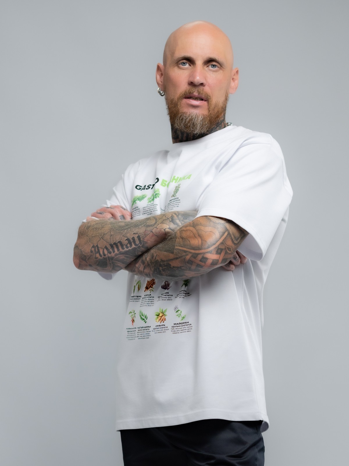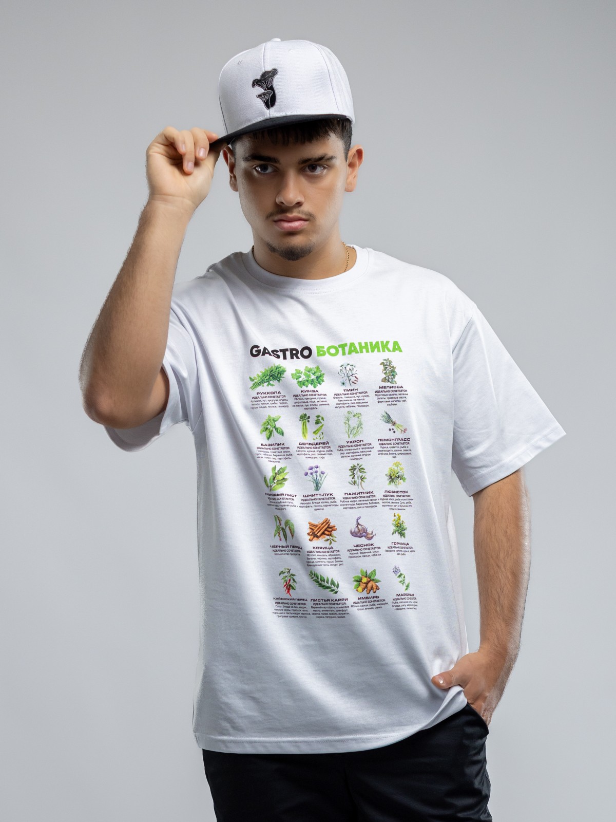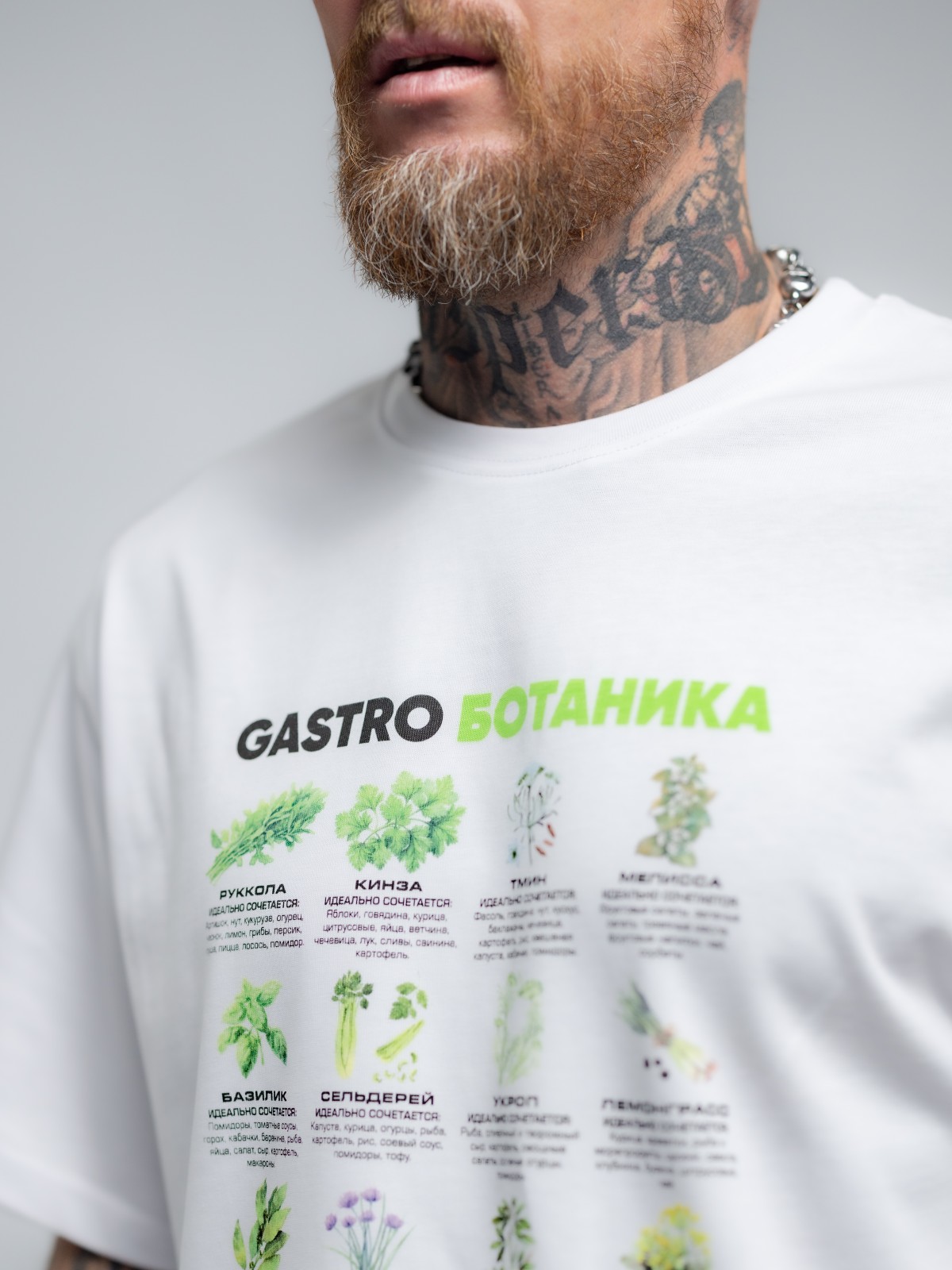 из приятного трикотажа плотностью 230гр/м2 с ярким принтом ГАСТРОБОТАНИКА.