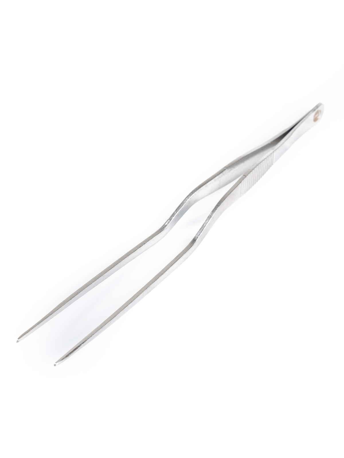 Украсить блюдо аккуратно и точно поможет изогнутый кулинарный пинцет PITERPROF изготовленный из нержавеющей стали.