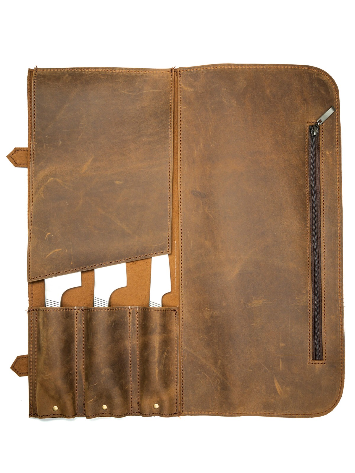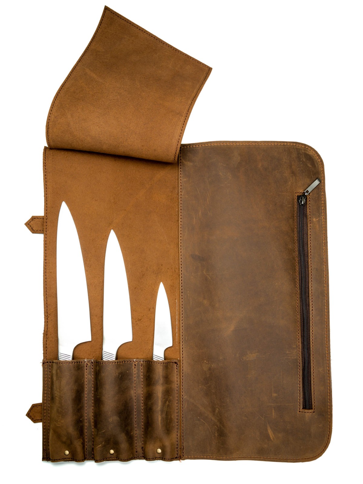 - Скрутка позволяет в себе разместить 3 ножа, для которых есть отдельные кармашки.