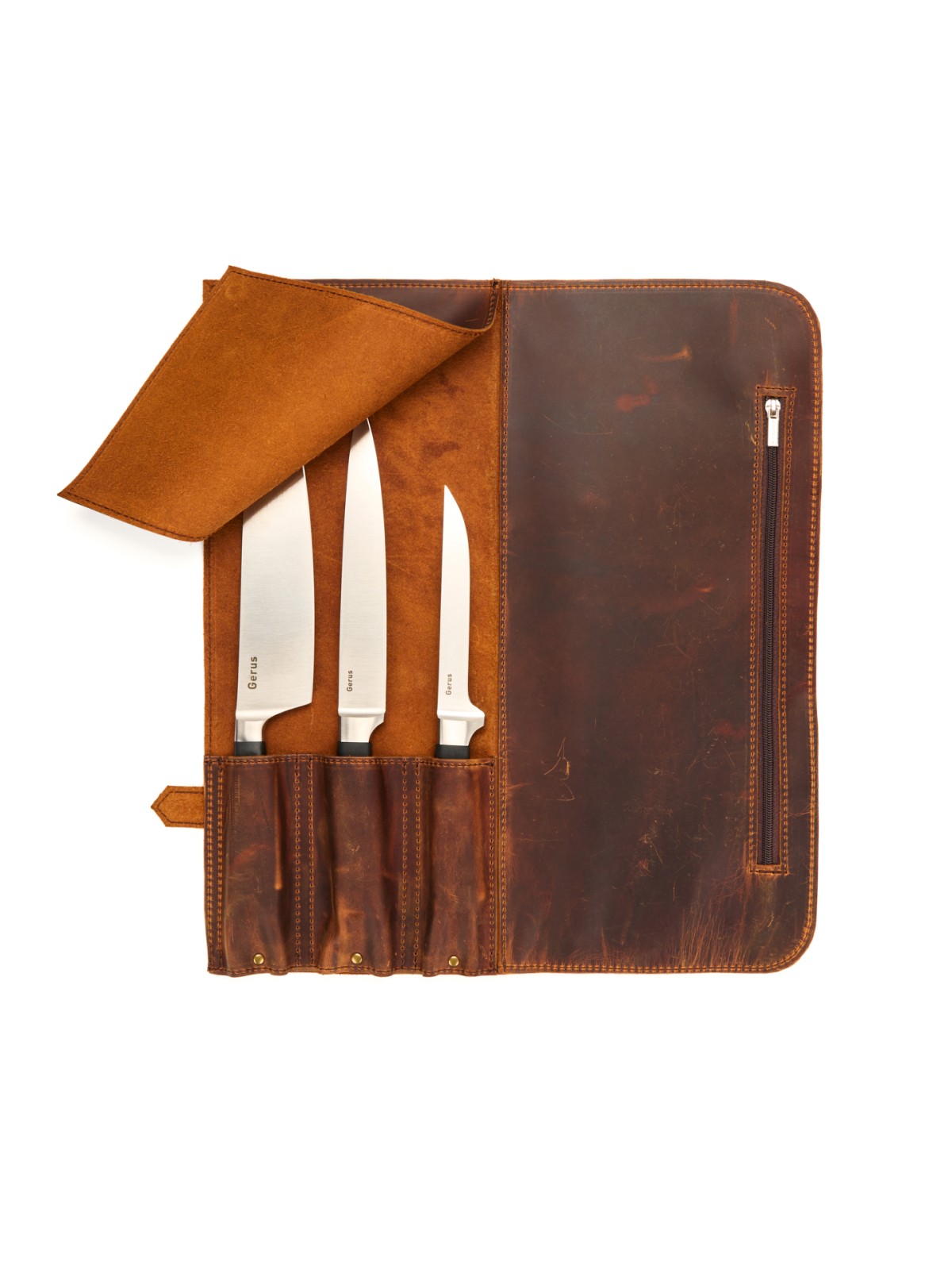 Кожаная сумка скрутка на 3 ножа - это первая скрутка для повара переходящего на новый уровень.