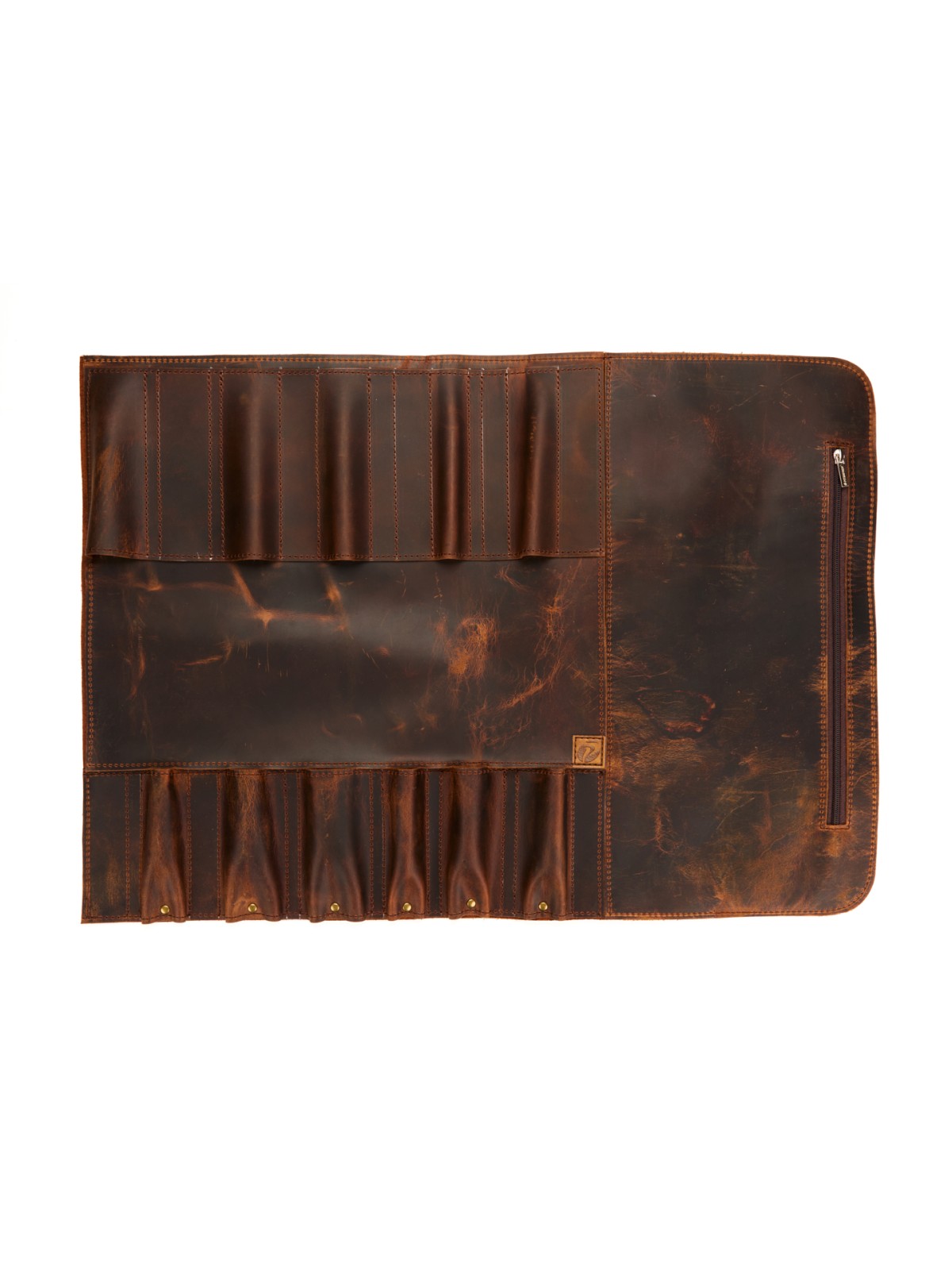 Кожаная сумка скрутка на 12 ножей + на огромное количество остальных инструментов.