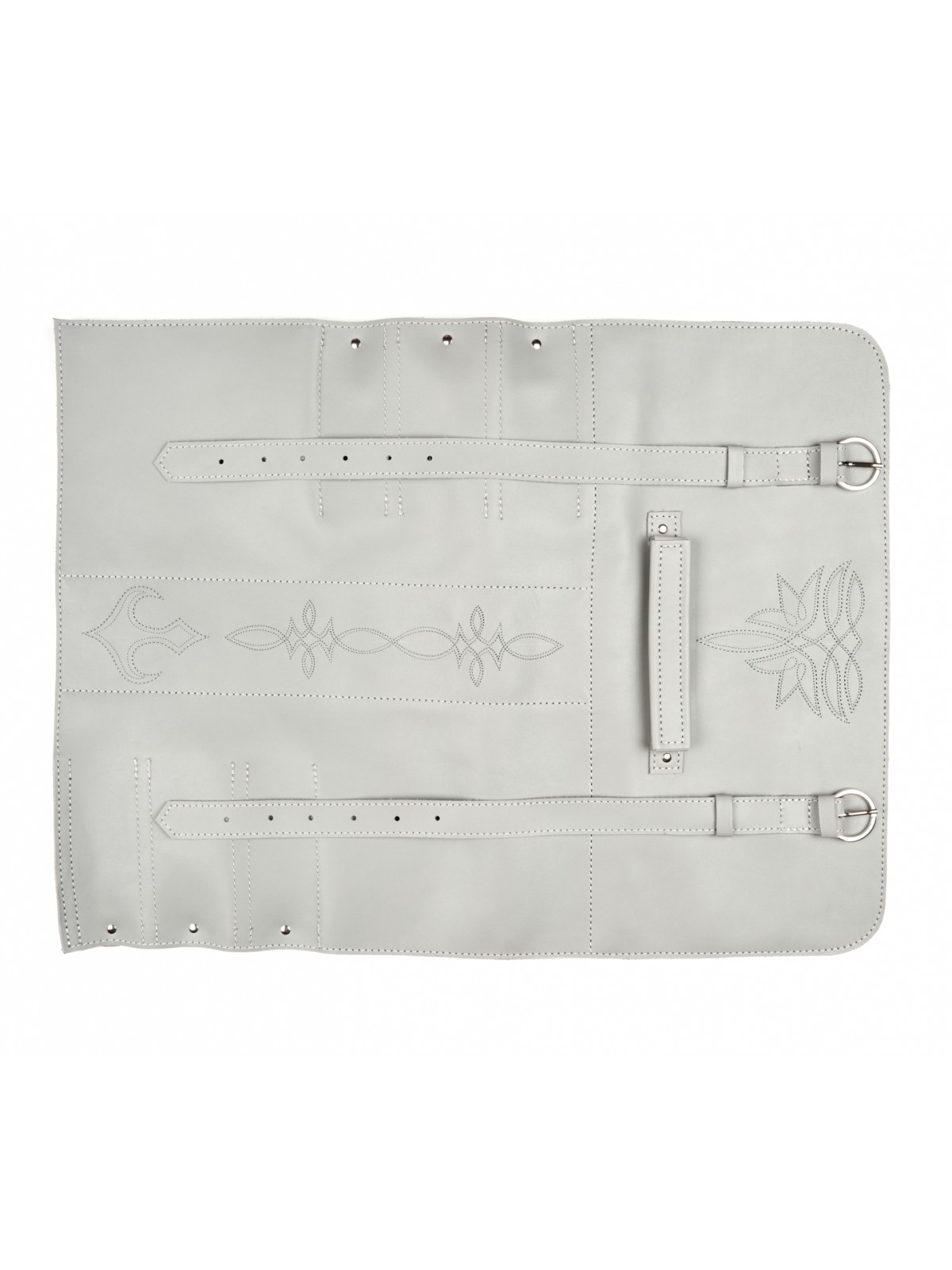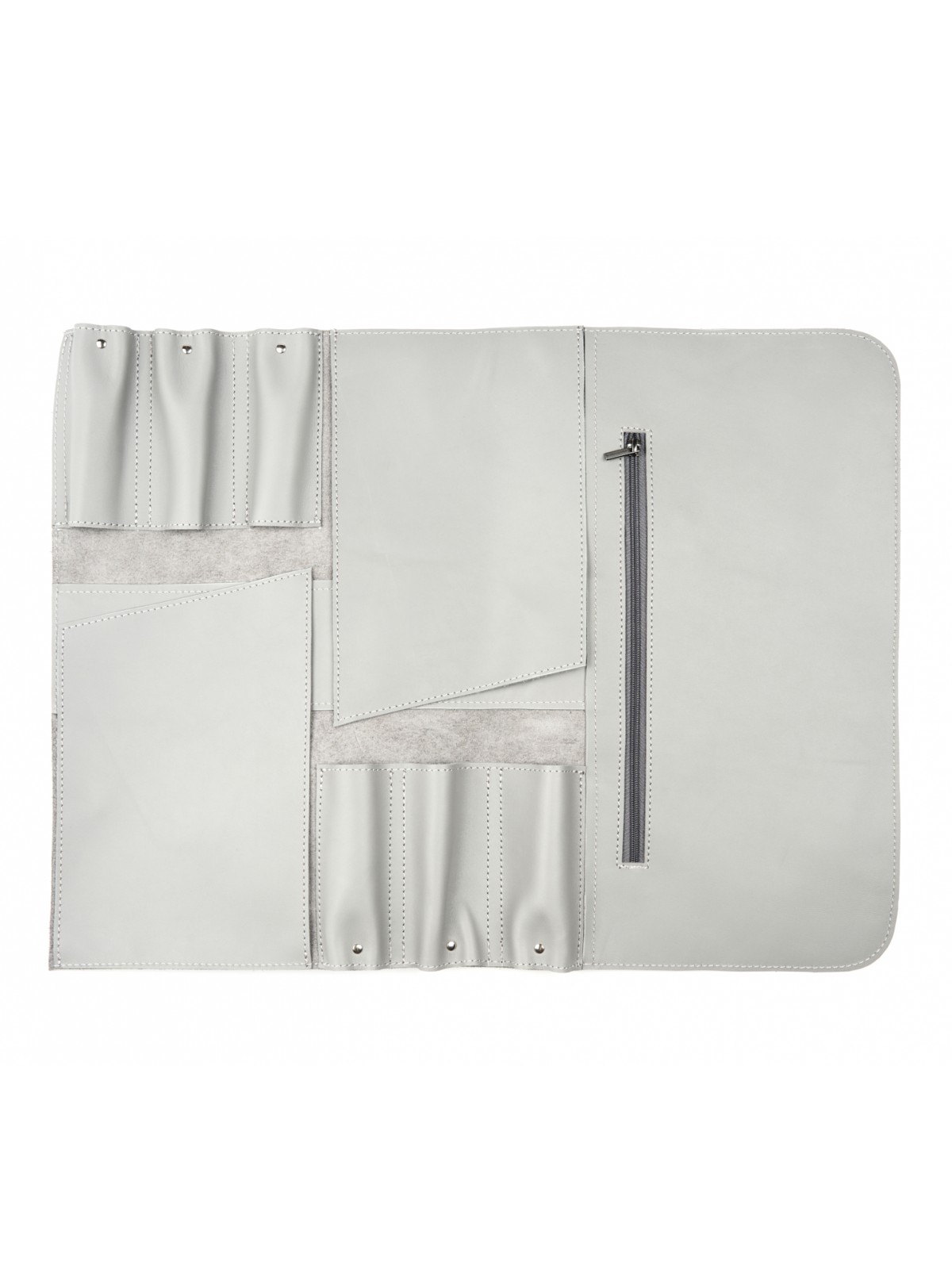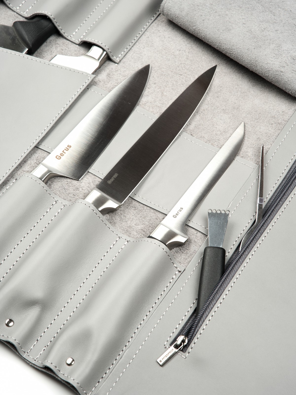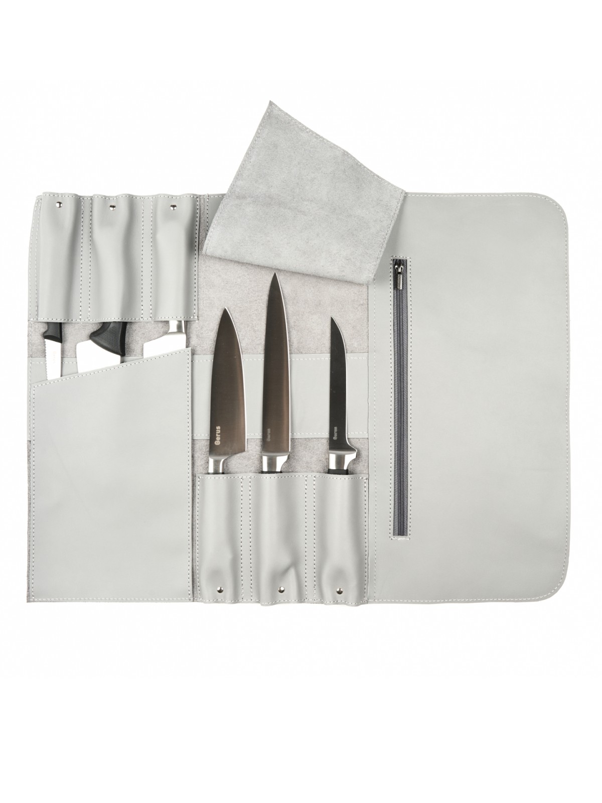 6 карманов для ножей и большой карман на молнии для остального инструмента.