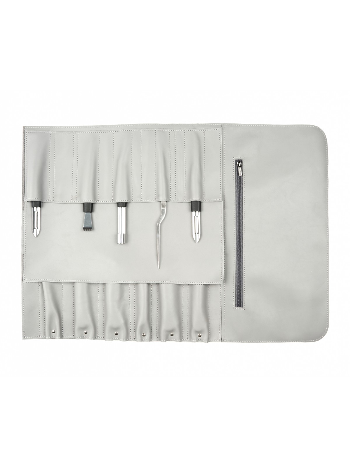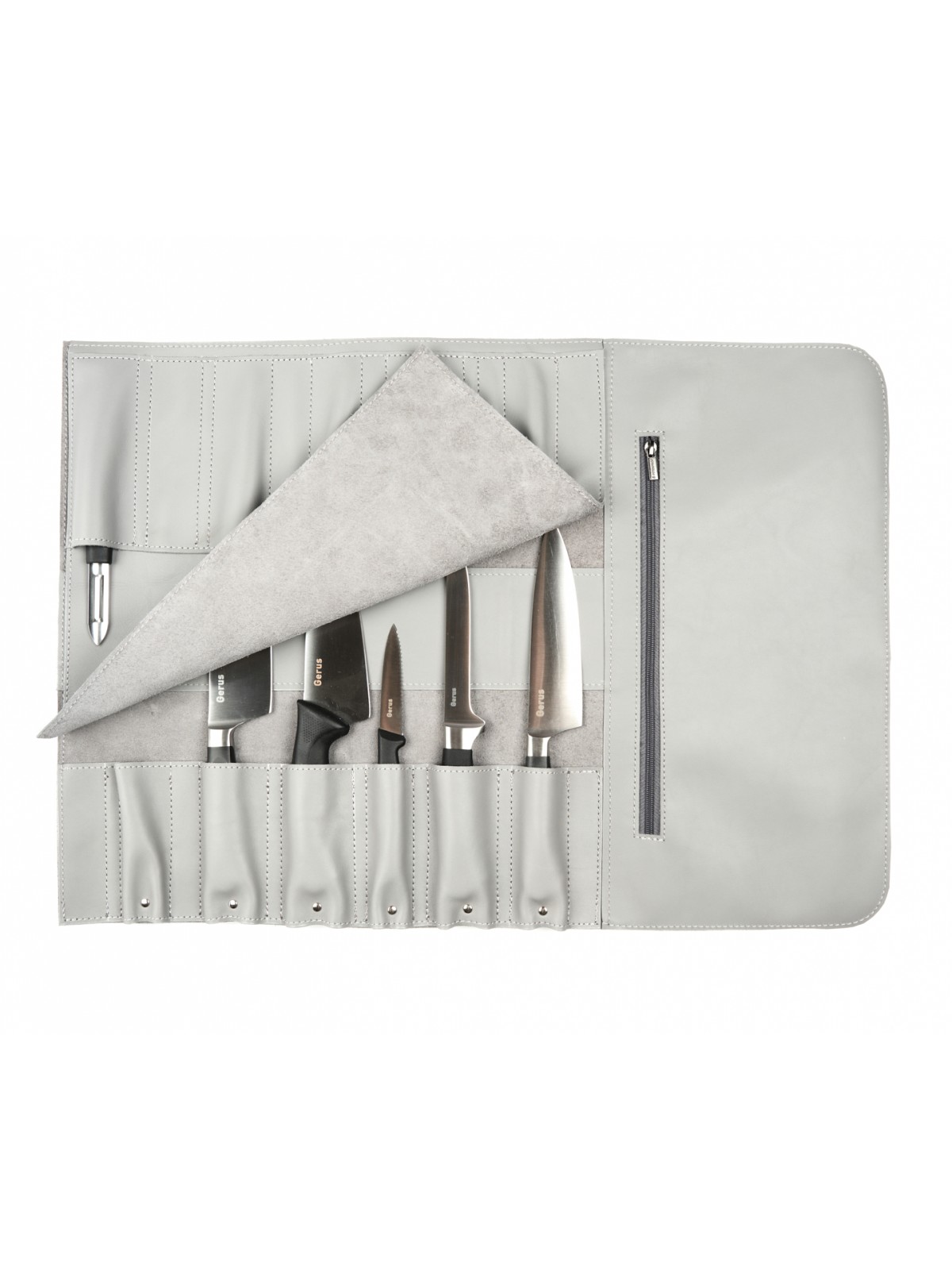 Для каждого ножа найдётся свой карман, а для предметов которые не подходят по формату есть 2 специальных больших кармана на молнии.
